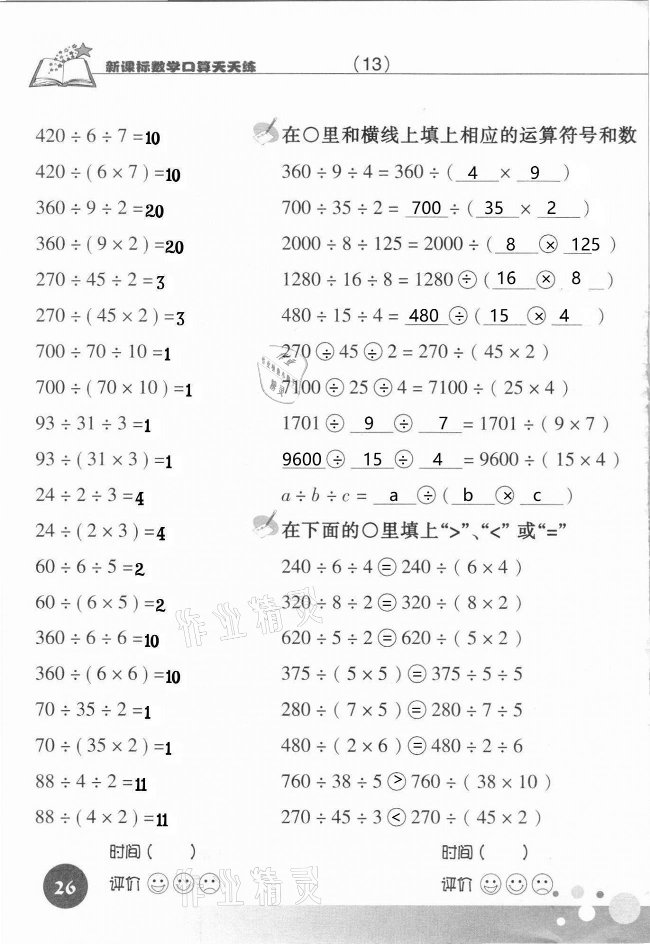 注:目前有些书本章节名称可能整理的还不是很完善,但都是按照顺序排列的,请同学们按照顺序仔细查找。练习册 2021年新课标数学口算天天练四年级下册人教版 答案主要是用来给同学们做完题方便对答案用的,请勿直接抄袭。