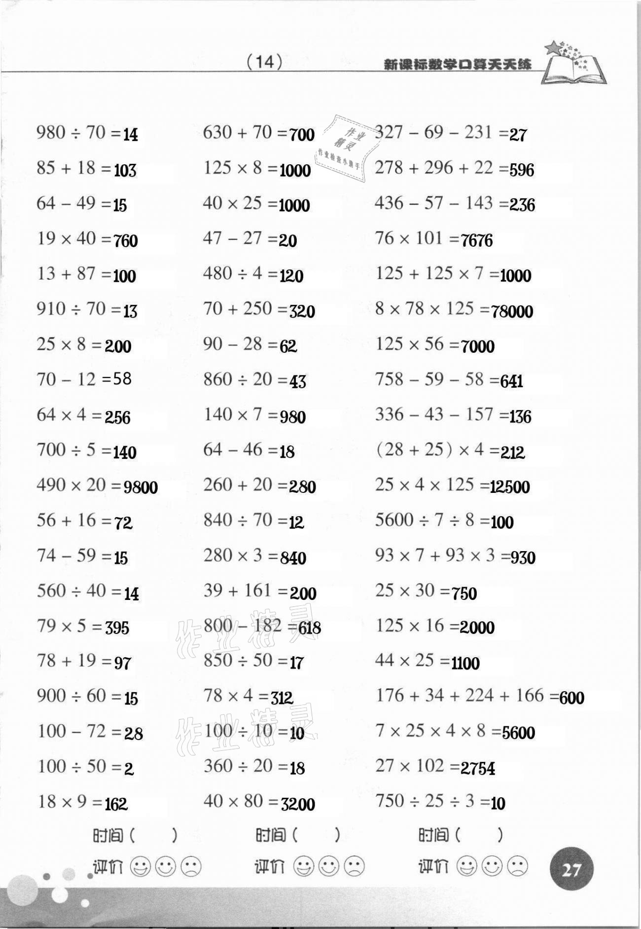 注:目前有些书本章节名称可能整理的还不是很完善,但都是按照顺序排列的,请同学们按照顺序仔细查找。练习册 2021年新课标数学口算天天练四年级下册人教版 答案主要是用来给同学们做完题方便对答案用的,请勿直接抄袭。
