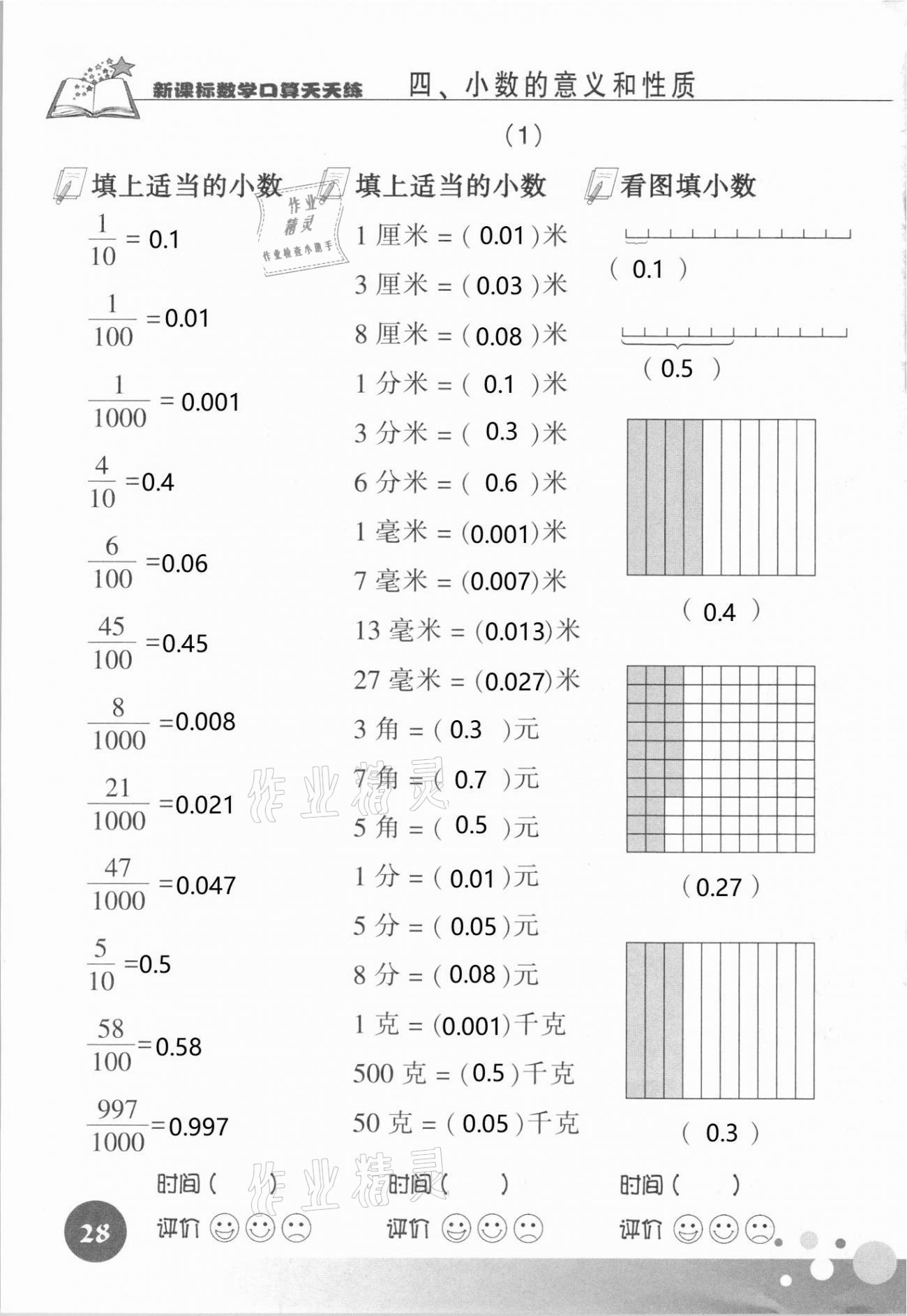 注:目前有些书本章节名称可能整理的还不是很完善,但都是按照顺序排列的,请同学们按照顺序仔细查找。练习册 2021年新课标数学口算天天练四年级下册人教版 答案主要是用来给同学们做完题方便对答案用的,请勿直接抄袭。
