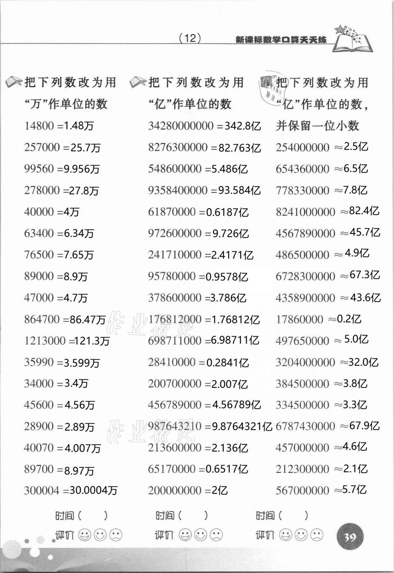 注:目前有些书本章节名称可能整理的还不是很完善,但都是按照顺序排列的,请同学们按照顺序仔细查找。练习册 2021年新课标数学口算天天练四年级下册人教版 答案主要是用来给同学们做完题方便对答案用的,请勿直接抄袭。