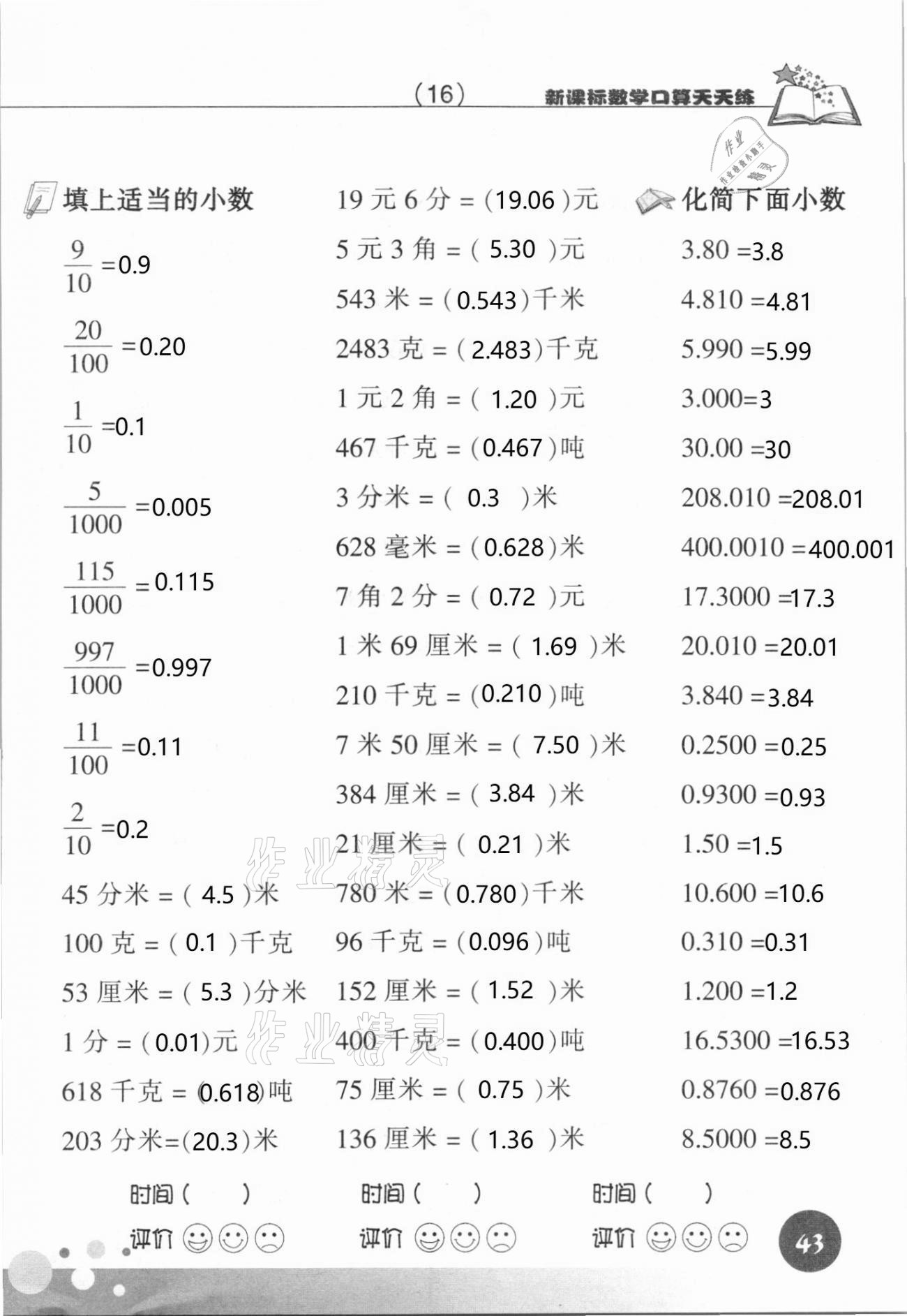 注:目前有些书本章节名称可能整理的还不是很完善,但都是按照顺序排列的,请同学们按照顺序仔细查找。练习册 2021年新课标数学口算天天练四年级下册人教版 答案主要是用来给同学们做完题方便对答案用的,请勿直接抄袭。