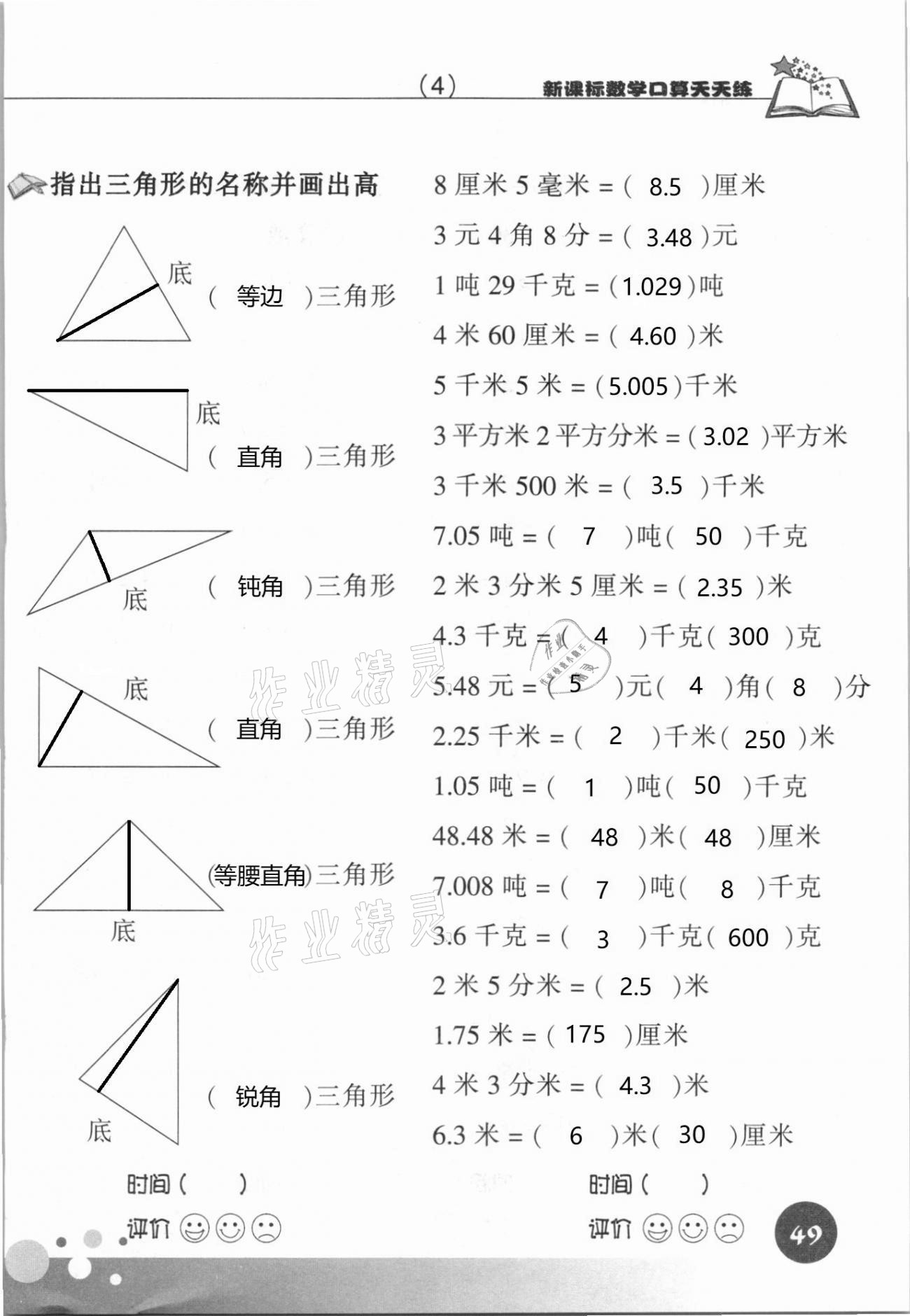 注:目前有些书本章节名称可能整理的还不是很完善,但都是按照顺序排列的,请同学们按照顺序仔细查找。练习册 2021年新课标数学口算天天练四年级下册人教版 答案主要是用来给同学们做完题方便对答案用的,请勿直接抄袭。