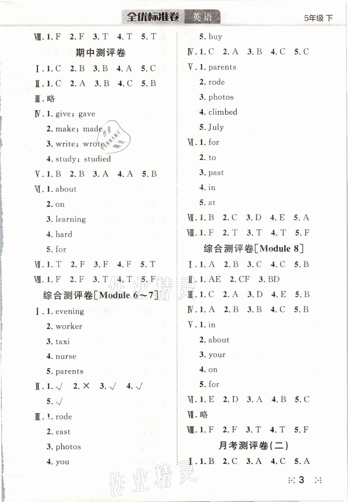 注:目前有些书本章节名称可能整理的还不是很完善,但都是按照顺序排列的,请同学们按照顺序仔细查找。练习册 2021年全优标准卷五年级英语下册外研版 答案主要是用来给同学们做完题方便对答案用的,请勿直接抄袭。