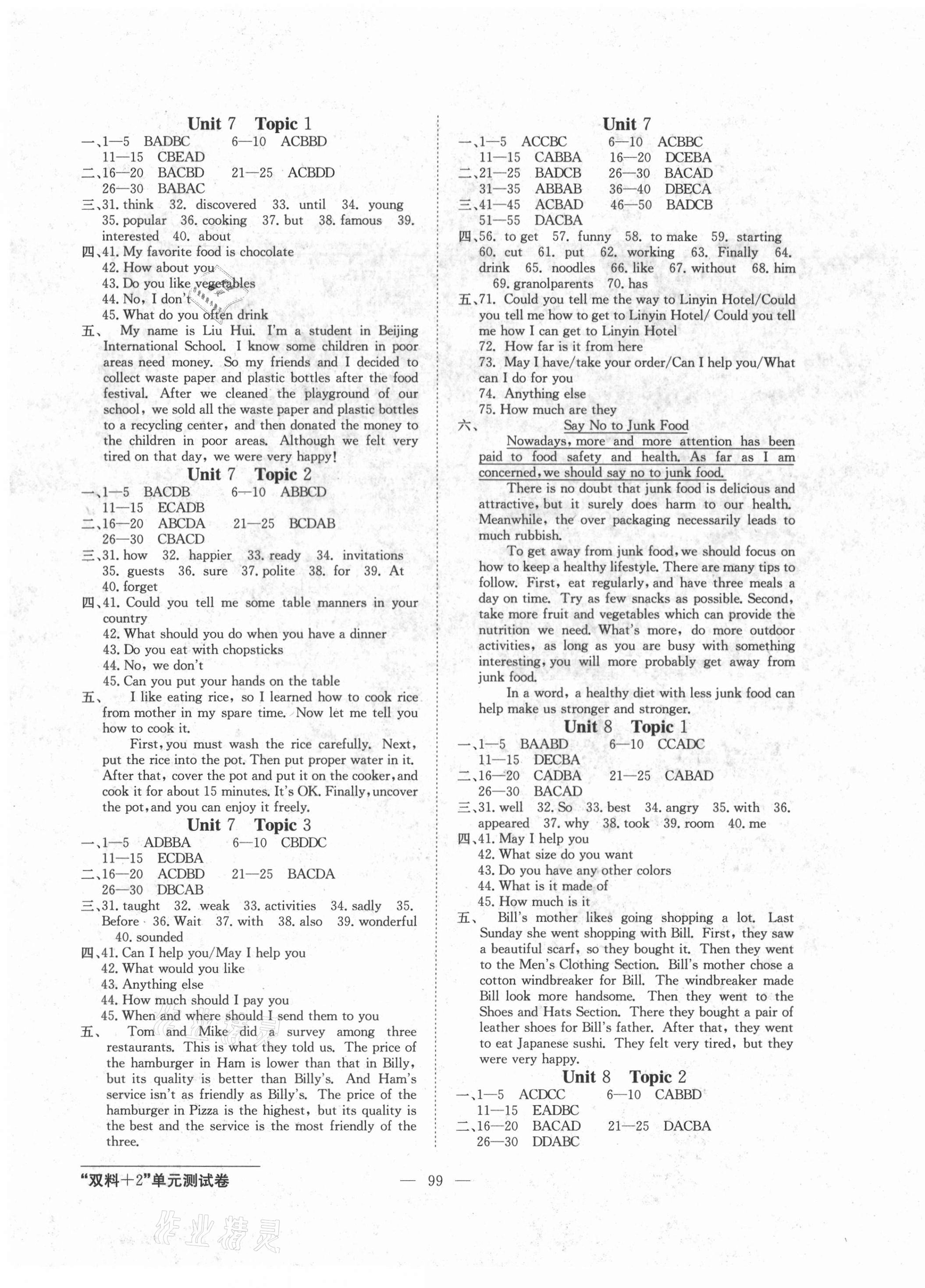 注:目前有些书本章节名称可能整理的还不是很完善,但都是按照顺序排列的,请同学们按照顺序仔细查找。练习册 2021年双料加2单元测试卷八年级英语下册人教版 答案主要是用来给同学们做完题方便对答案用的,请勿直接抄袭。