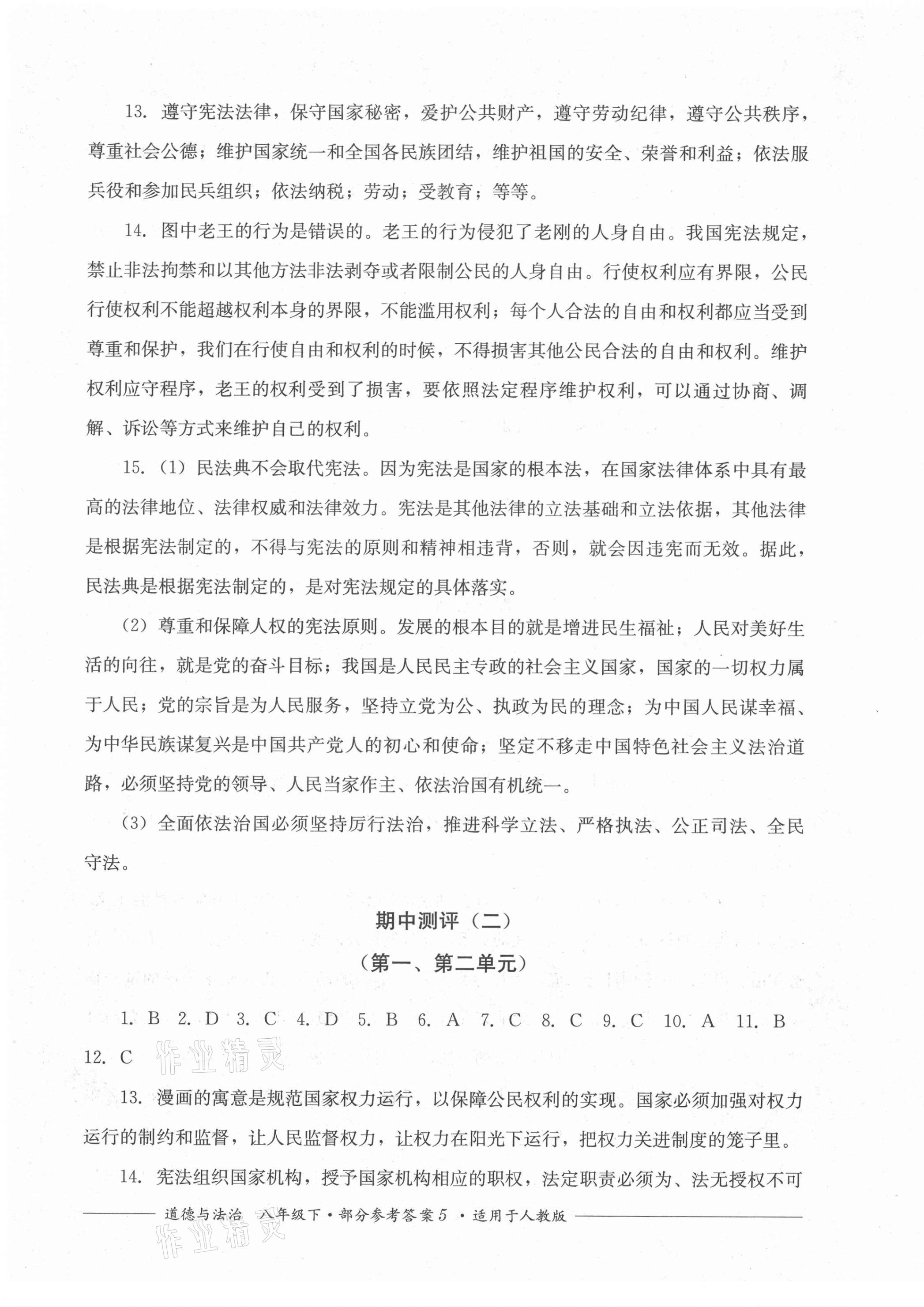 注:目前有些书本章节名称可能整理的还不是很完善,但都是按照顺序排列的,请同学们按照顺序仔细查找。练习册 2021年单元测评八年级道德与法治下册人教版四川教育出版社 答案主要是用来给同学们做完题方便对答案用的,请勿直接抄袭。