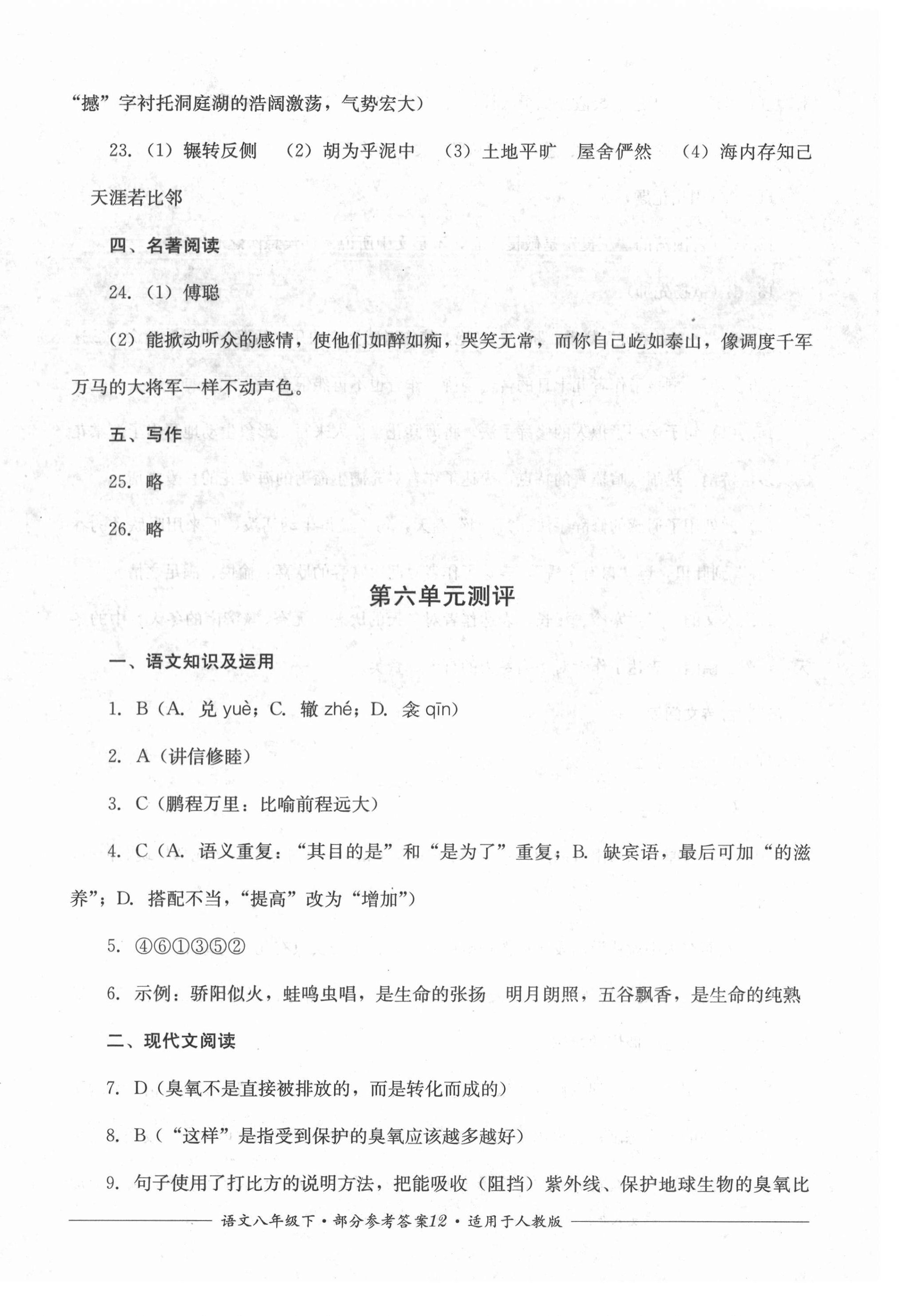 2021年单元测评八年级语文下册人教版四川教育出版社