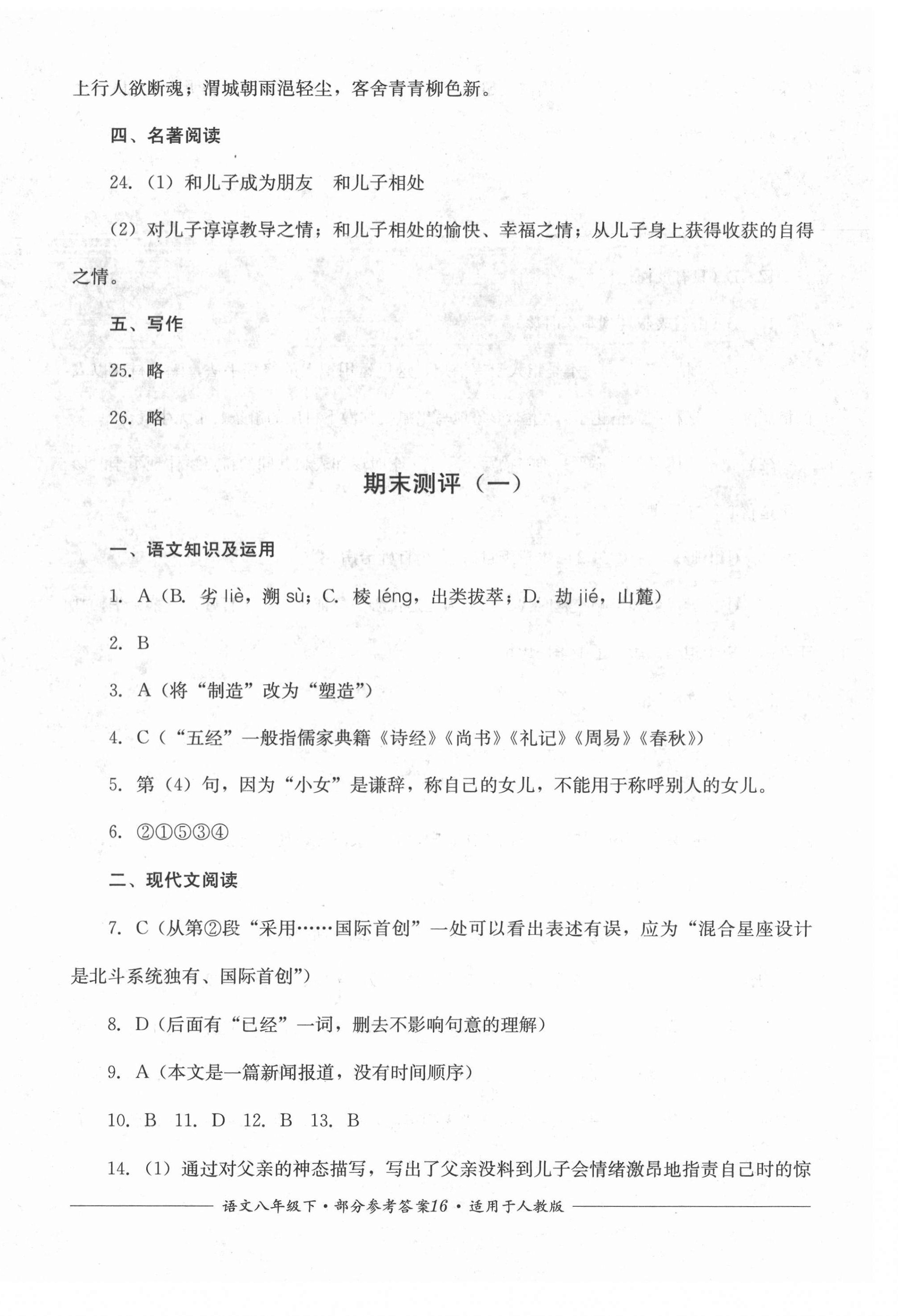 注:目前有些书本章节名称可能整理的还不是很完善,但都是按照顺序排列的,请同学们按照顺序仔细查找。练习册 2021年单元测评八年级语文下册人教版四川教育出版社 答案主要是用来给同学们做完题方便对答案用的,请勿直接抄袭。