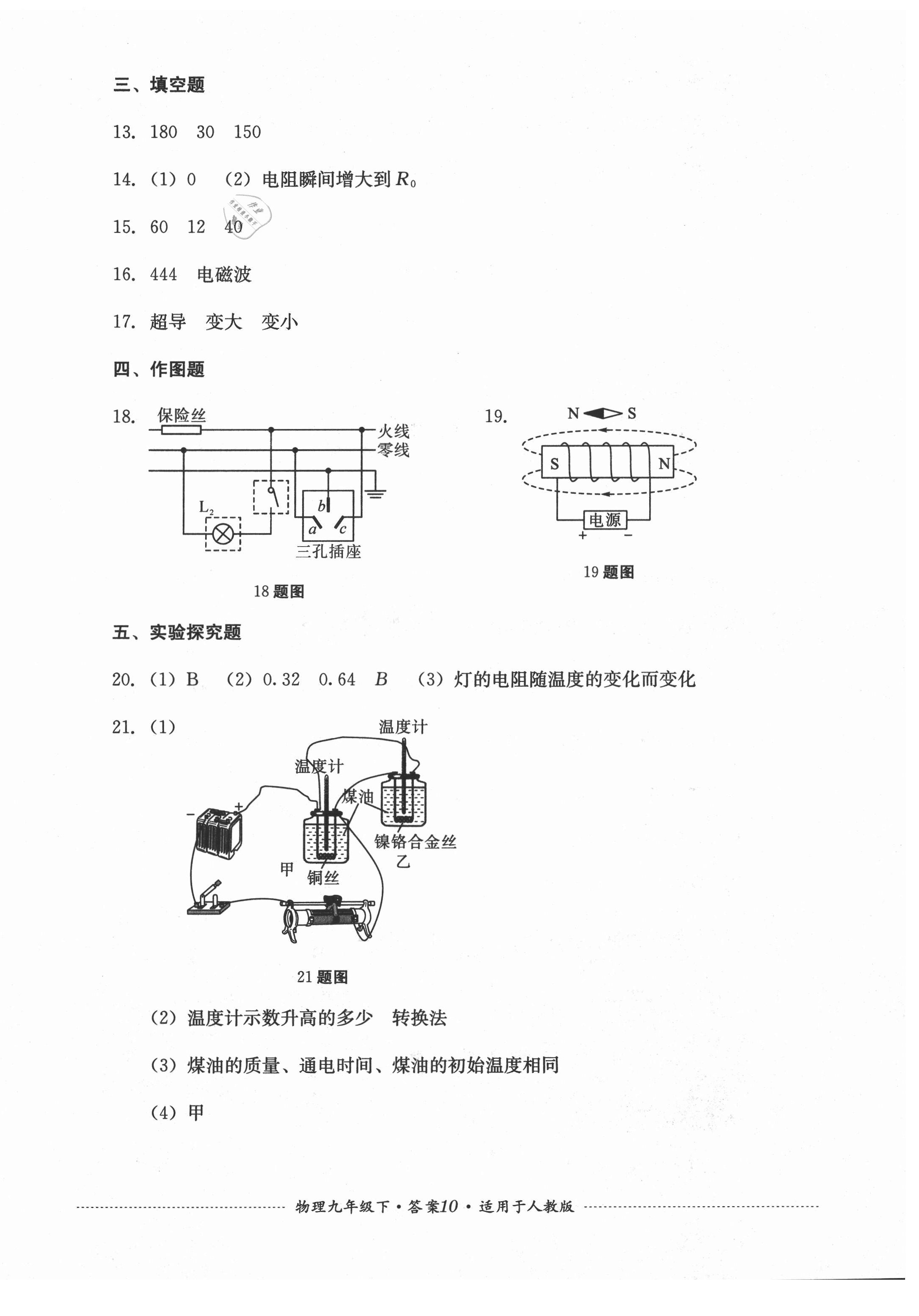 注:目前有些书本章节名称可能整理的还不是很完善,但都是按照顺序排列的,请同学们按照顺序仔细查找。练习册 2021年单元测试九年级物理下册人教版四川教育出版社 答案主要是用来给同学们做完题方便对答案用的,请勿直接抄袭。