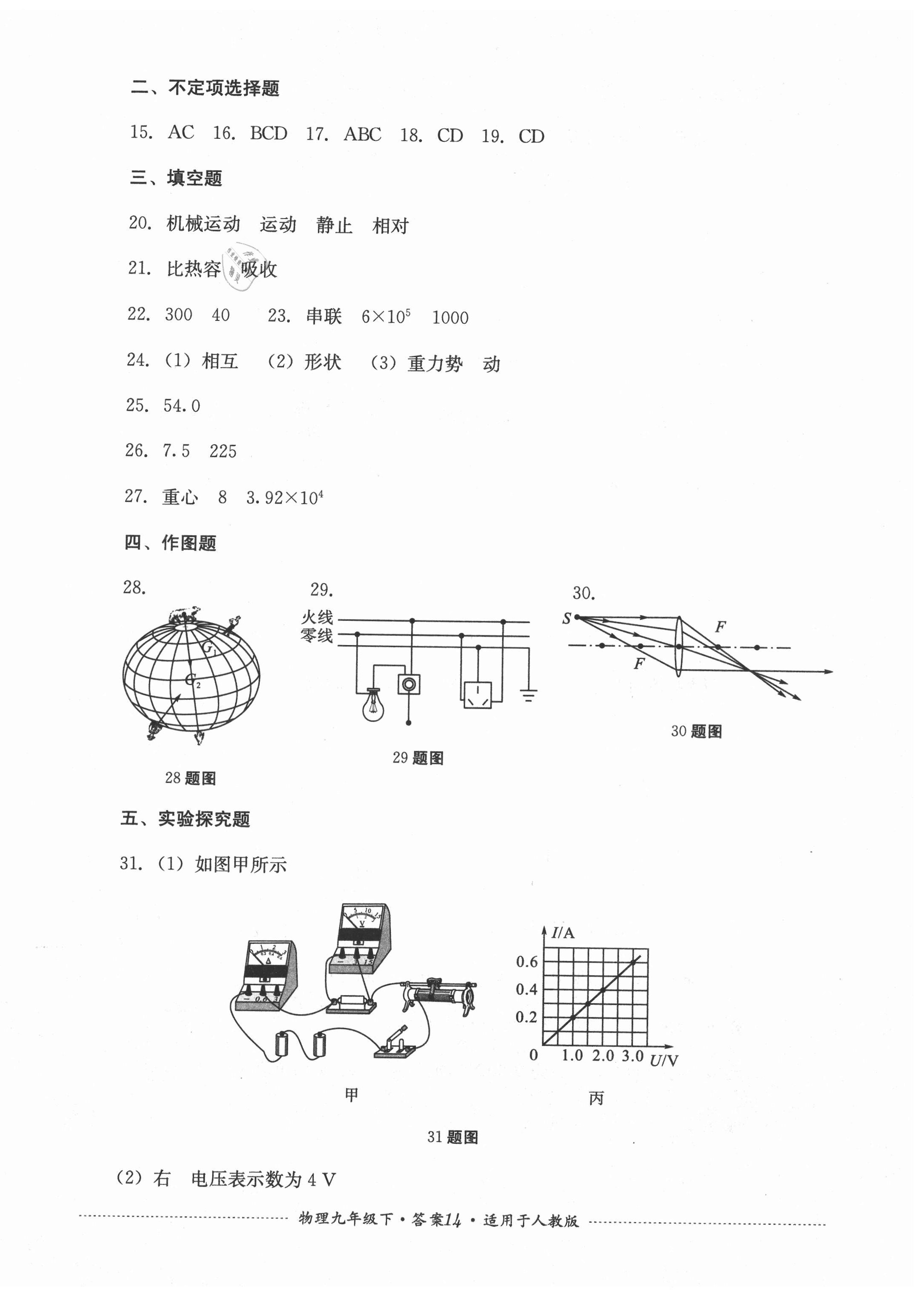 注:目前有些书本章节名称可能整理的还不是很完善,但都是按照顺序排列的,请同学们按照顺序仔细查找。练习册 2021年单元测试九年级物理下册人教版四川教育出版社 答案主要是用来给同学们做完题方便对答案用的,请勿直接抄袭。