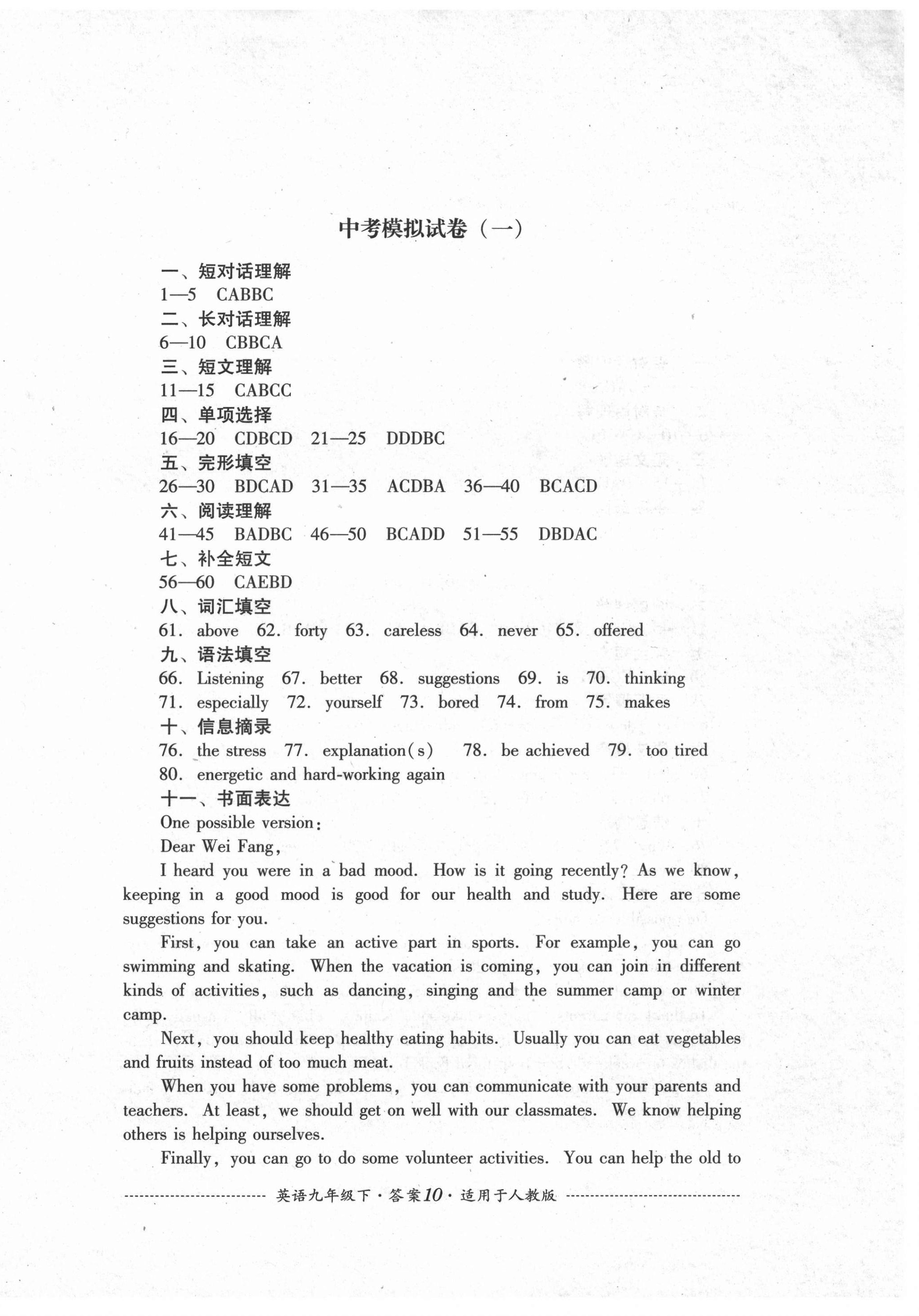 注:目前有些书本章节名称可能整理的还不是很完善,但都是按照顺序排列的,请同学们按照顺序仔细查找。练习册 2021年单元测试九年级英语下册人教版四川教育出版社 答案主要是用来给同学们做完题方便对答案用的,请勿直接抄袭。