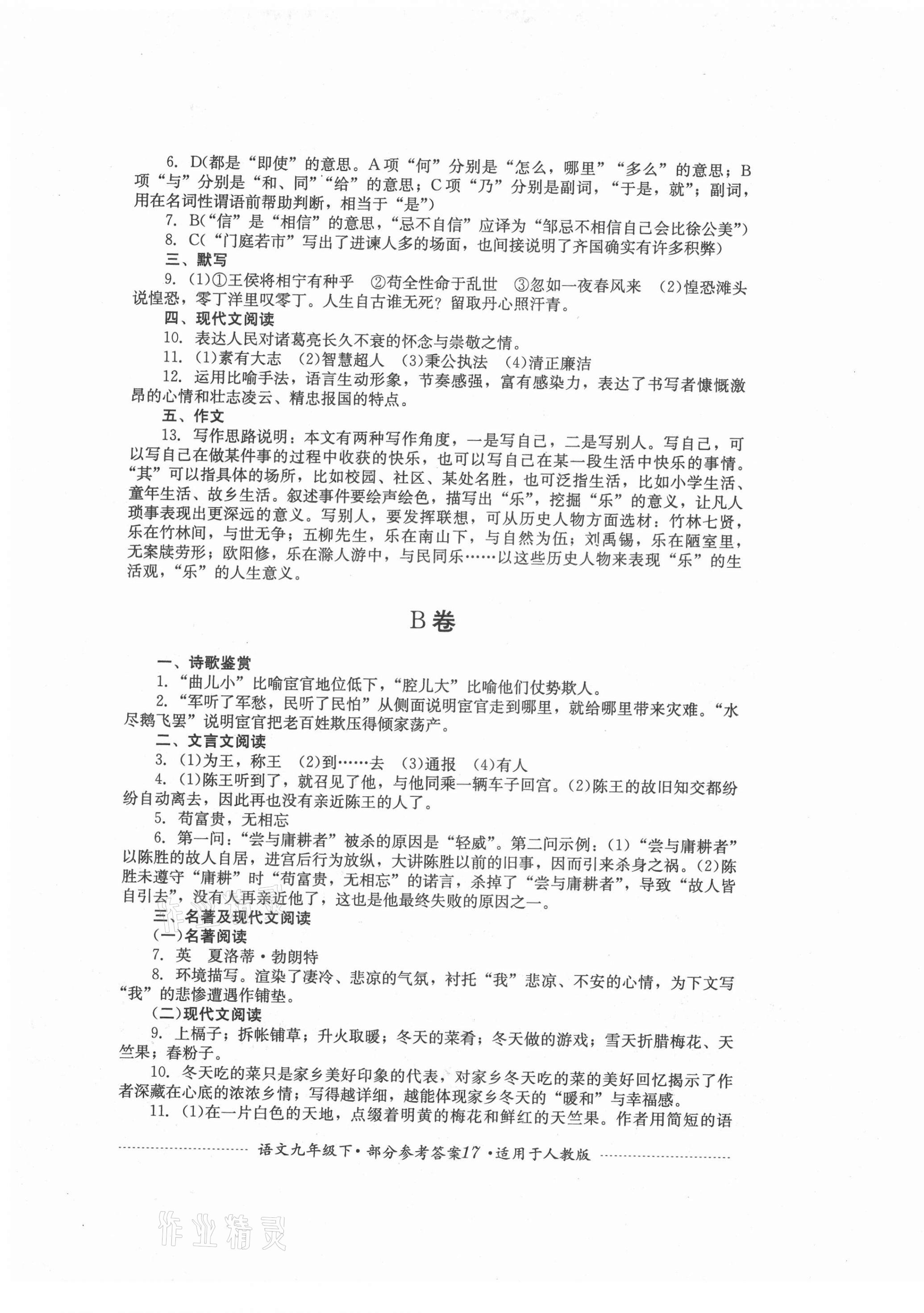 注:目前有些书本章节名称可能整理的还不是很完善,但都是按照顺序排列的,请同学们按照顺序仔细查找。练习册 2021年单元测试九年级语文下册人教版四川教育出版社 答案主要是用来给同学们做完题方便对答案用的,请勿直接抄袭。