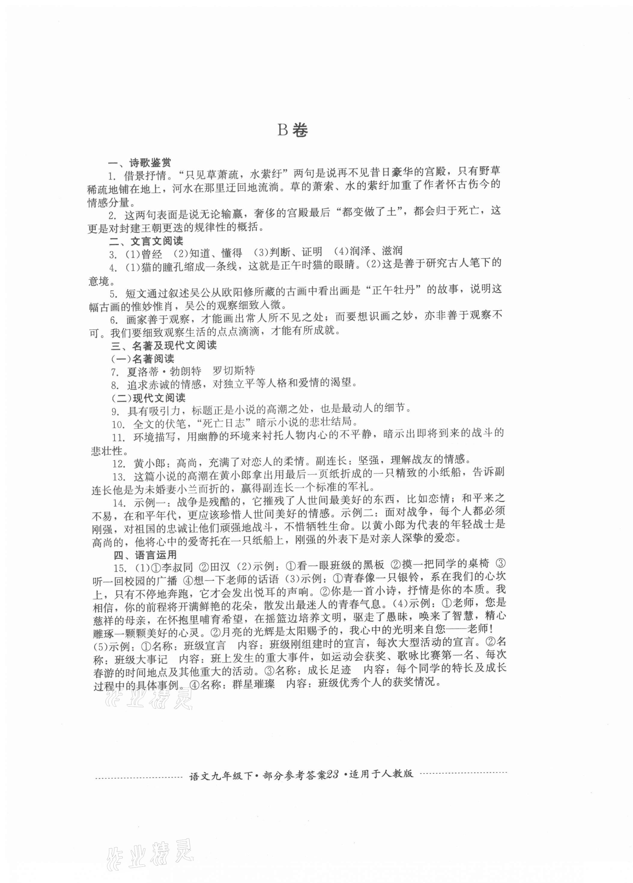 注:目前有些书本章节名称可能整理的还不是很完善,但都是按照顺序排列的,请同学们按照顺序仔细查找。练习册 2021年单元测试九年级语文下册人教版四川教育出版社 答案主要是用来给同学们做完题方便对答案用的,请勿直接抄袭。
