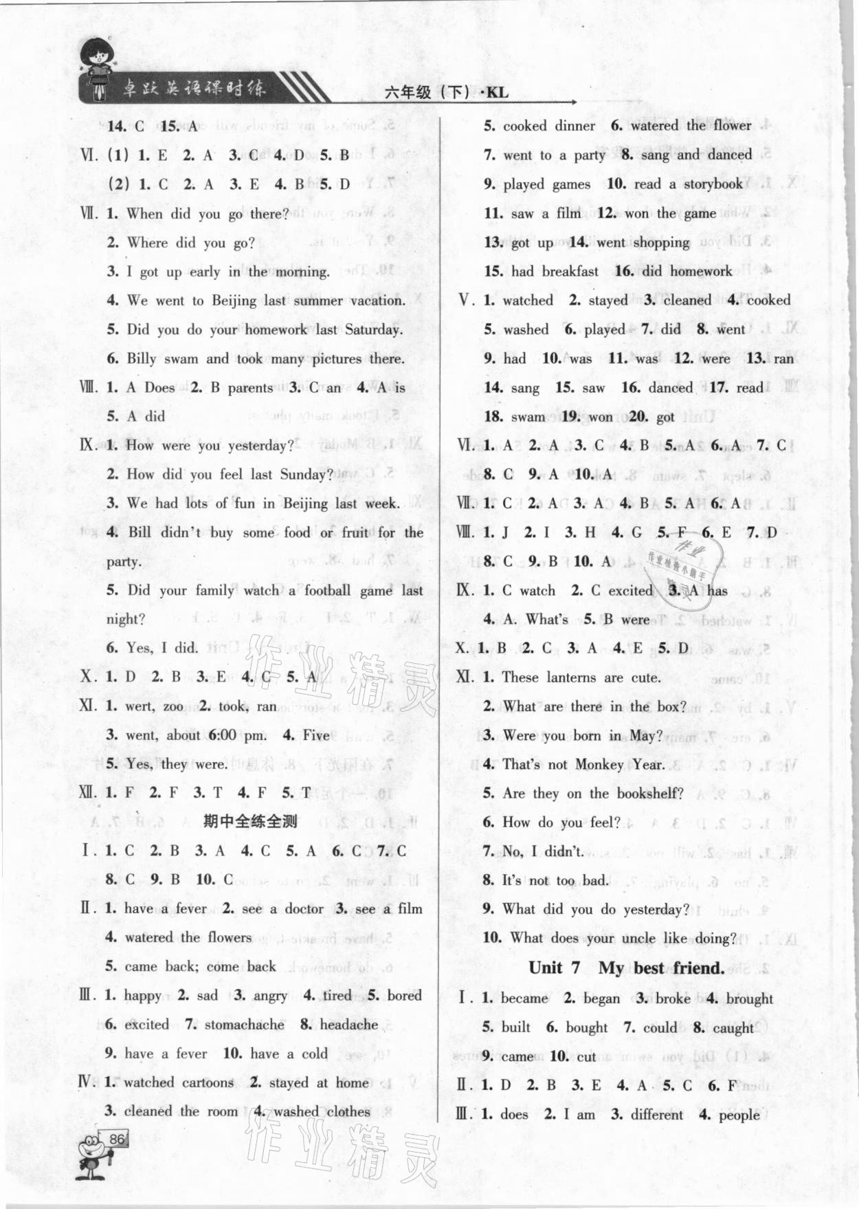 注:目前有些书本章节名称可能整理的还不是很完善,但都是按照顺序排列的,请同学们按照顺序仔细查找。练习册 2021年卓越英语六年级下册辽师大版 答案主要是用来给同学们做完题方便对答案用的,请勿直接抄袭。