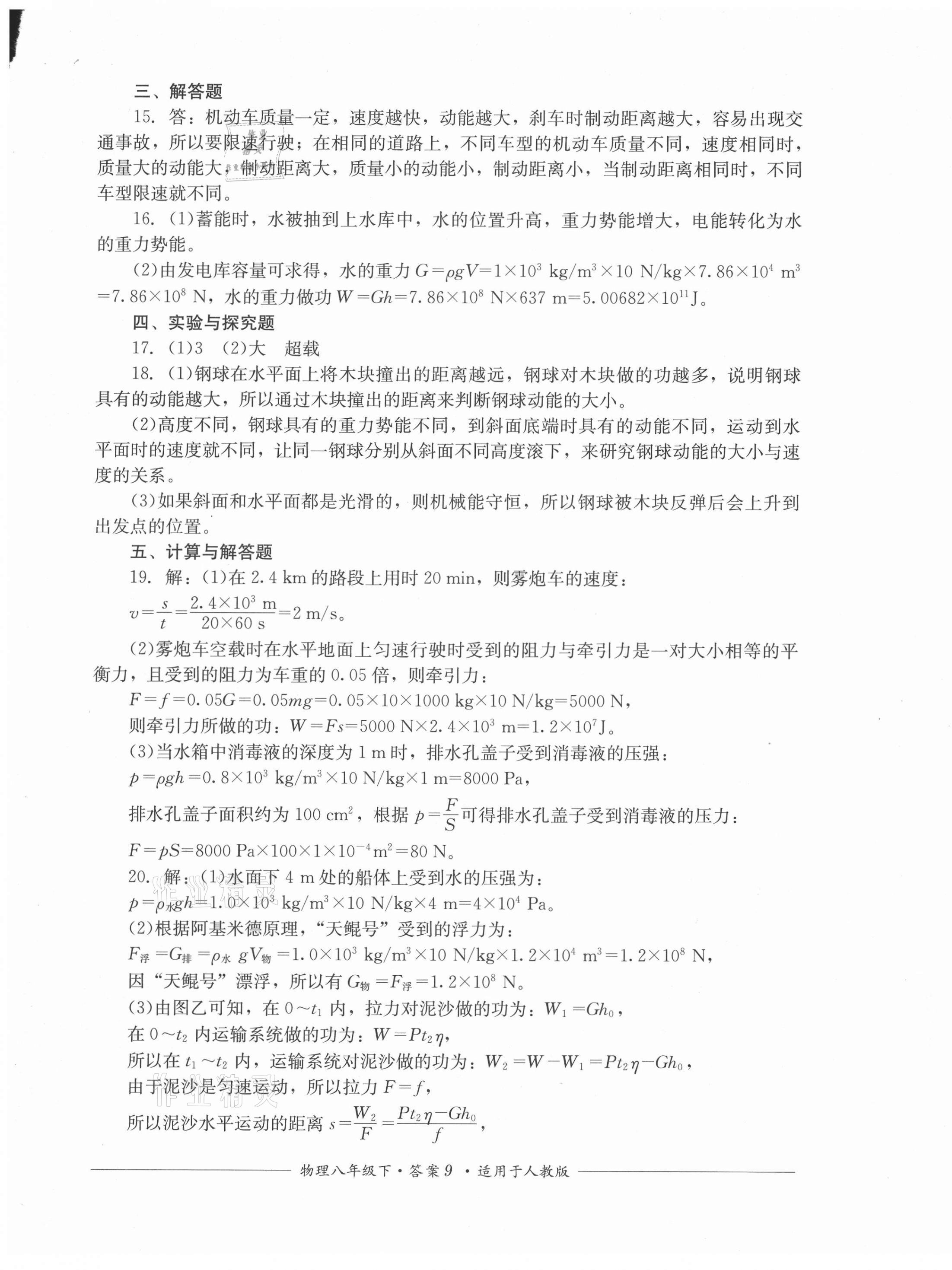 注:目前有些书本章节名称可能整理的还不是很完善,但都是按照顺序排列的,请同学们按照顺序仔细查找。练习册 2021年单元测评八年级物理下册人教版四川教育出版社 答案主要是用来给同学们做完题方便对答案用的,请勿直接抄袭。