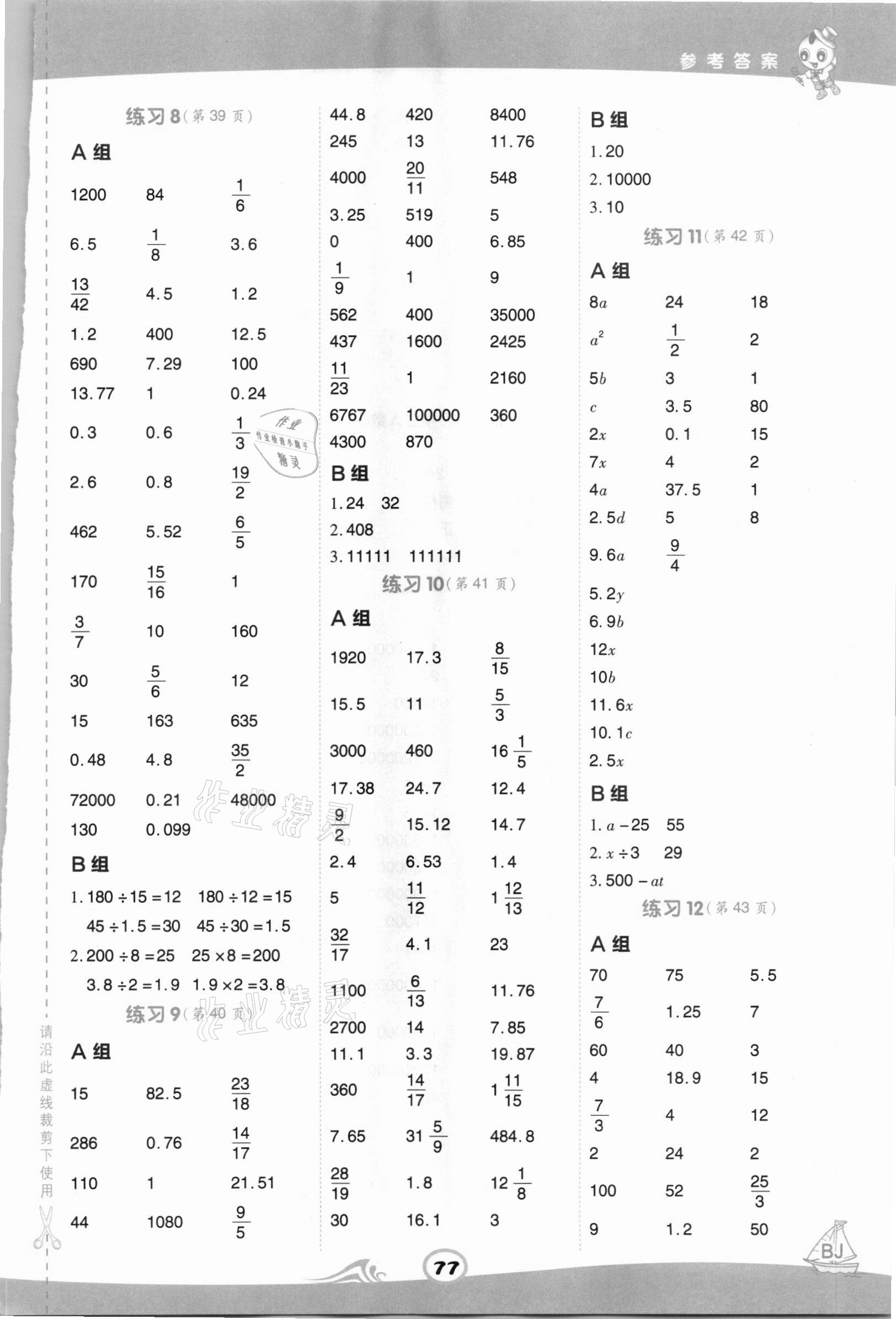 注:目前有些书本章节名称可能整理的还不是很完善,但都是按照顺序排列的,请同学们按照顺序仔细查找。练习册 2021年星级口算天天练六年级数学下册北京课改版 答案主要是用来给同学们做完题方便对答案用的,请勿直接抄袭。