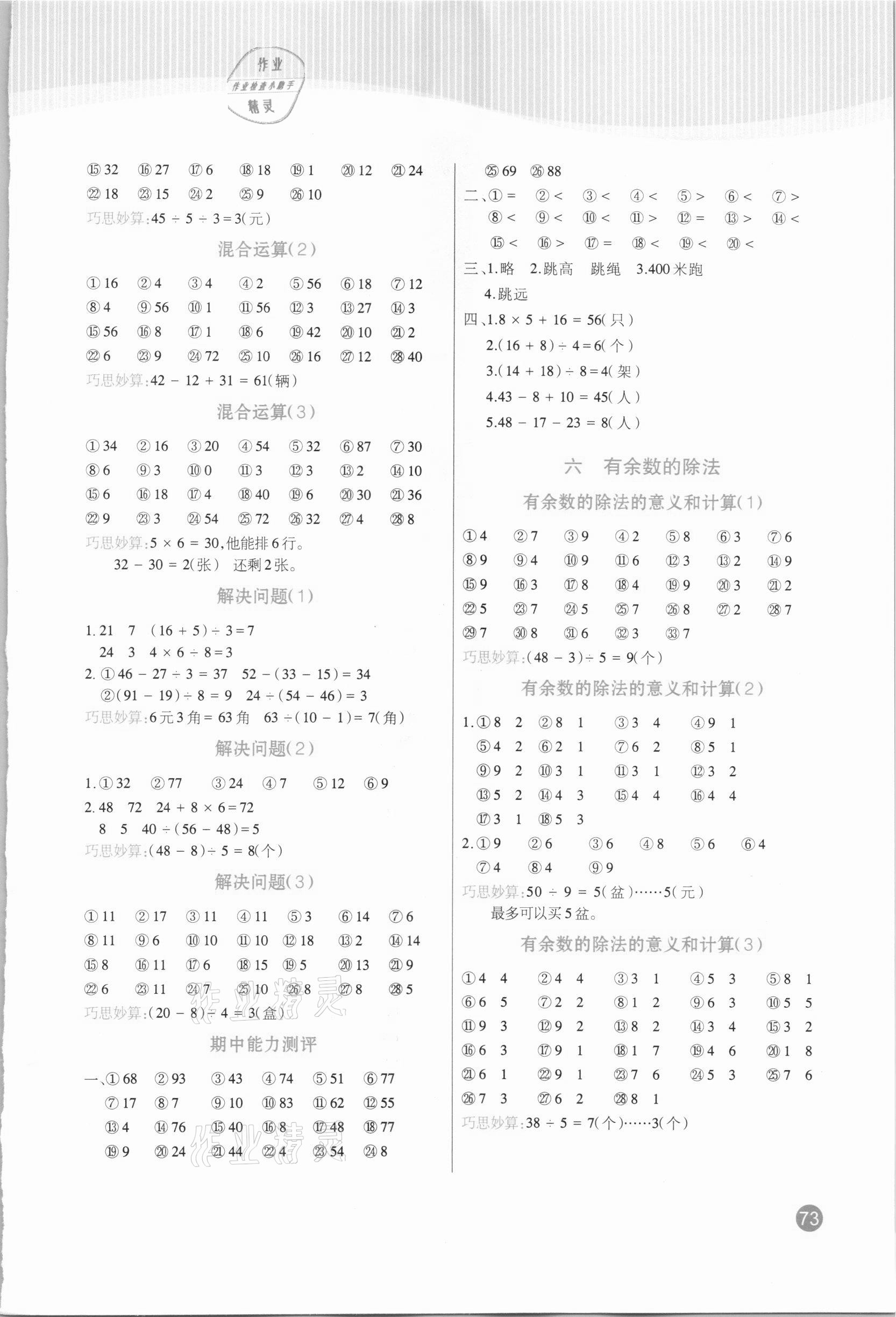 注:目前有些书本章节名称可能整理的还不是很完善,但都是按照顺序排列的,请同学们按照顺序仔细查找。练习册 2021年小学生口算题卡加应用题专项二年级下册人教版阳光出版社 答案主要是用来给同学们做完题方便对答案用的,请勿直接抄袭。