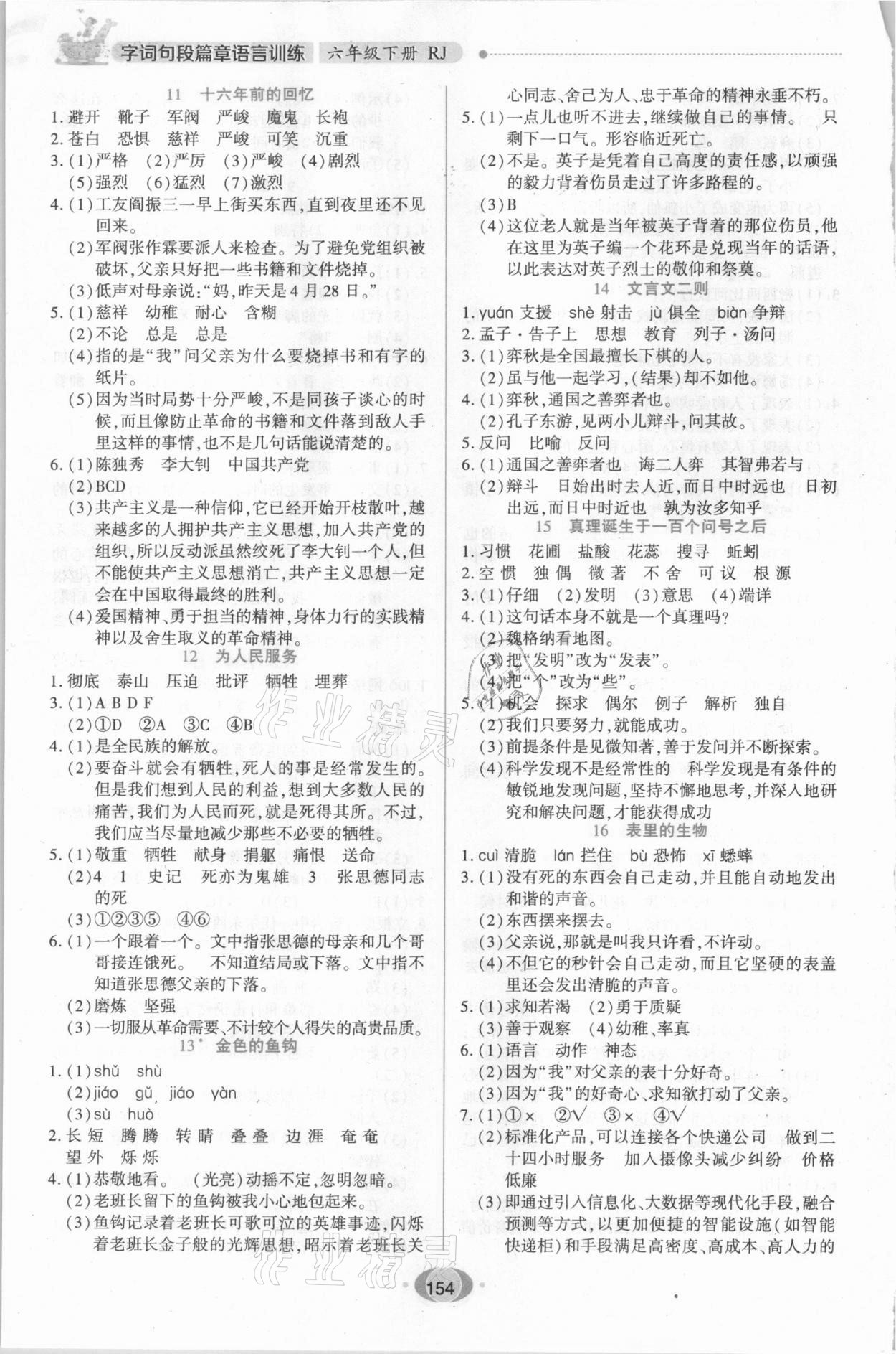 注:目前有些书本章节名称可能整理的还不是很完善,但都是按照顺序排列的,请同学们按照顺序仔细查找。练习册 2021年字词句段篇章语言训练六年级下册人教版 答案主要是用来给同学们做完题方便对答案用的,请勿直接抄袭。