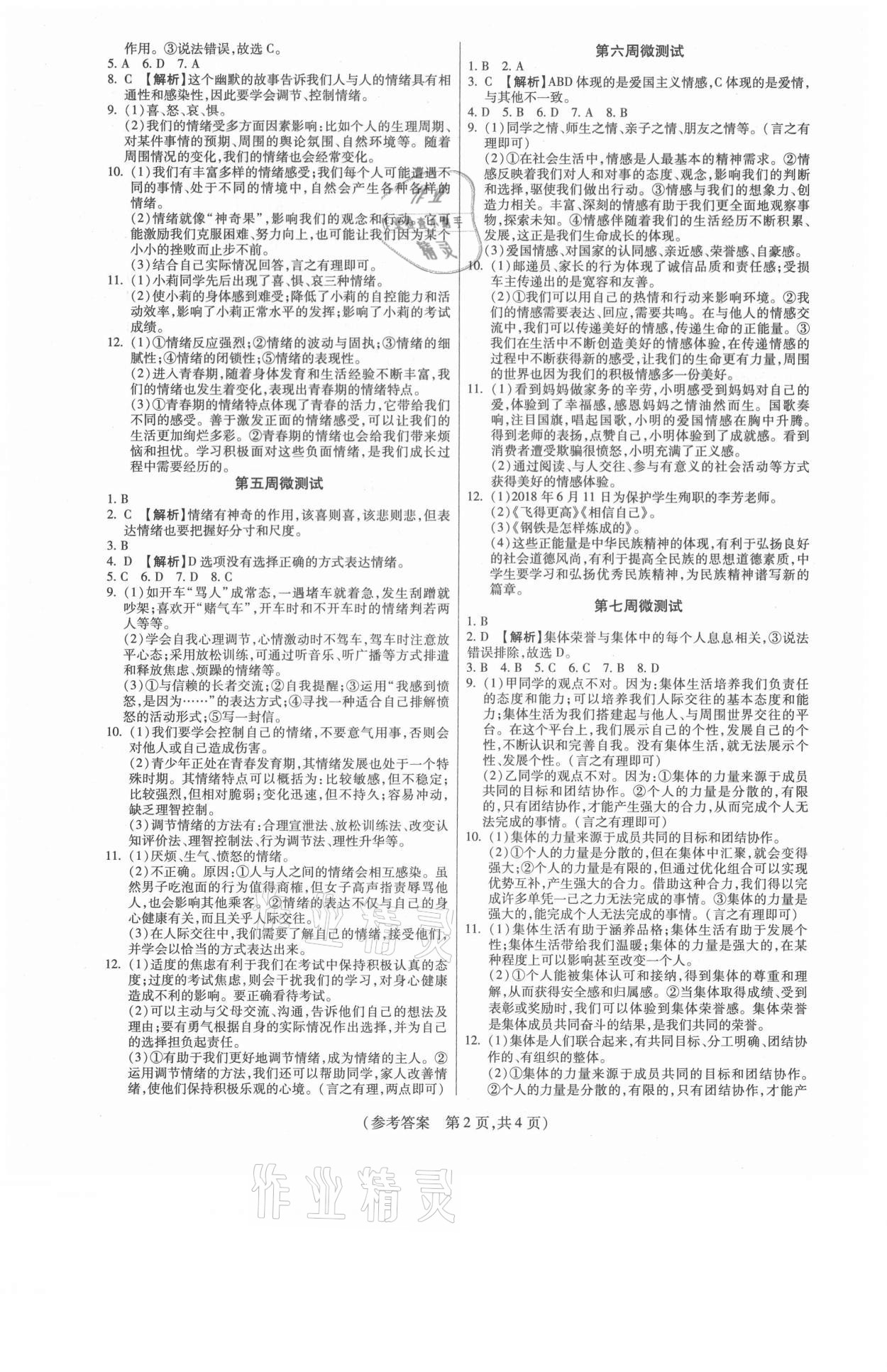 注:目前有些书本章节名称可能整理的还不是很完善,但都是按照顺序排列的,请同学们按照顺序仔细查找。练习册 2021年智能优选卷七年级道德与法治下册人教版 答案主要是用来给同学们做完题方便对答案用的,请勿直接抄袭。