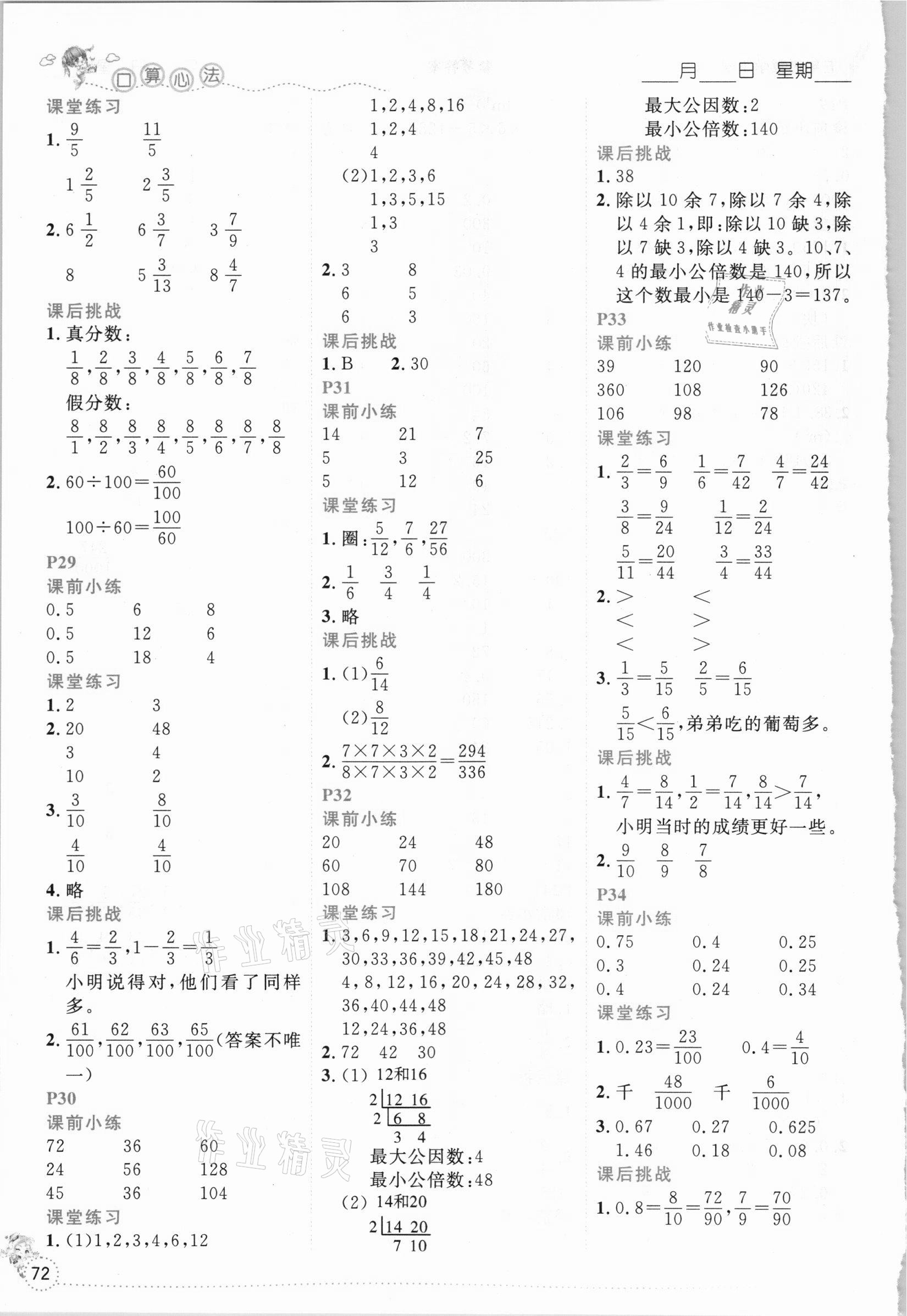 注:目前有些书本章节名称可能整理的还不是很完善,但都是按照顺序排列的,请同学们按照顺序仔细查找。练习册 2021年优秀生口算心法五年级下册人教版 答案主要是用来给同学们做完题方便对答案用的,请勿直接抄袭。