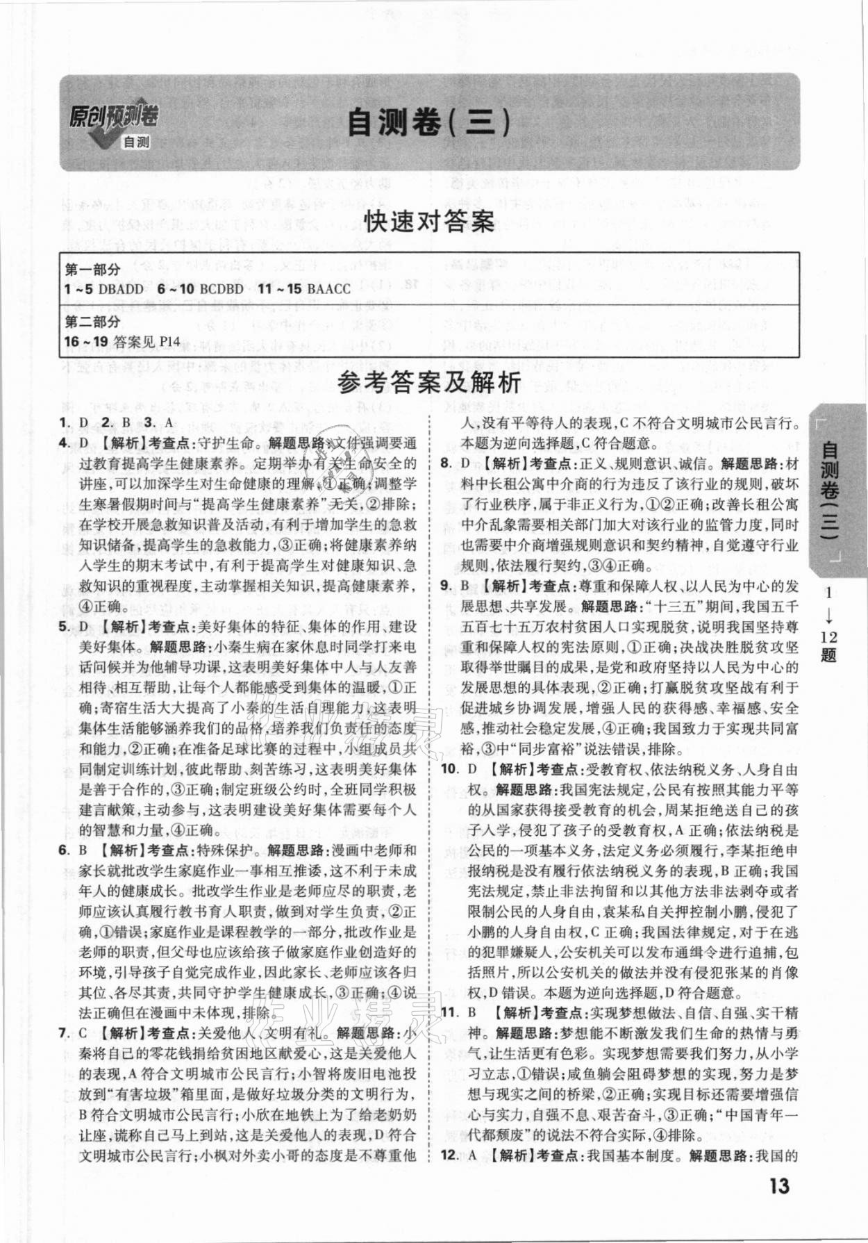 注:目前有些书本章节名称可能整理的还不是很完善,但都是按照顺序排列的,请同学们按照顺序仔细查找。练习册 2021年万唯中考原创预测卷道德与法治陕西专版 答案主要是用来给同学们做完题方便对答案用的,请勿直接抄袭。