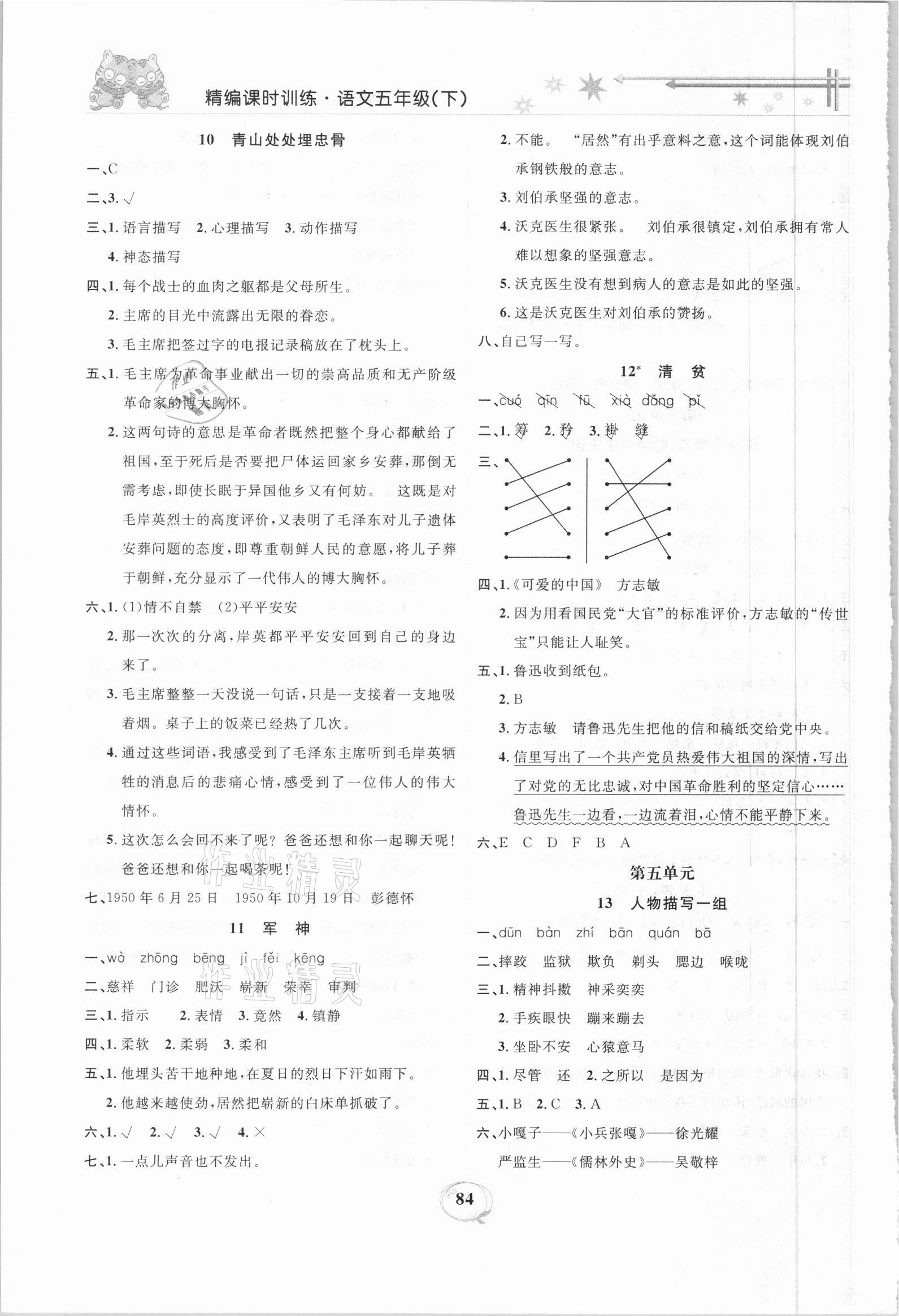 注:目前有些书本章节名称可能整理的还不是很完善,但都是按照顺序排列的,请同学们按照顺序仔细查找。练习册 2021年精编课时训练课必通五年级语文下册人教版 答案主要是用来给同学们做完题方便对答案用的,请勿直接抄袭。