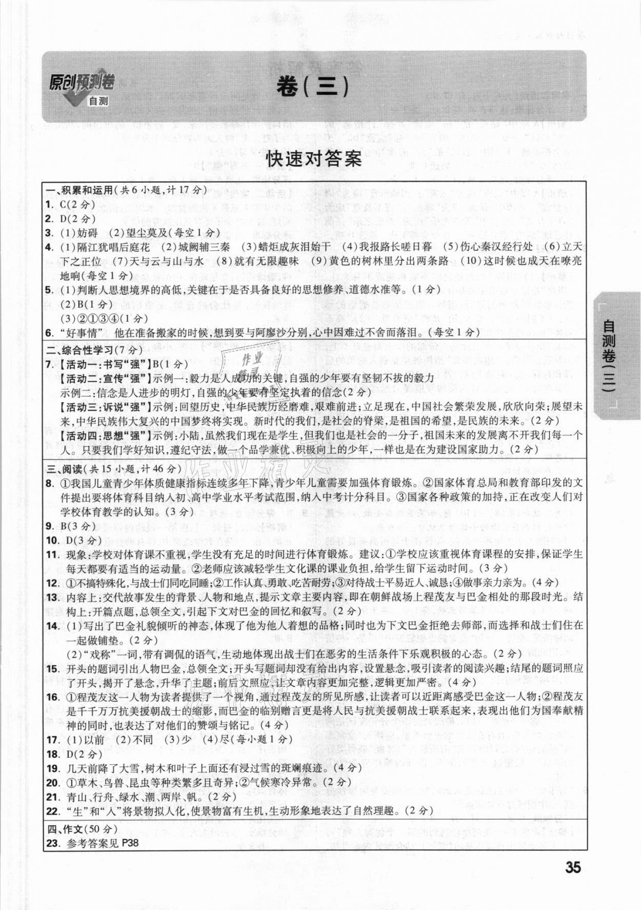 注:目前有些书本章节名称可能整理的还不是很完善,但都是按照顺序排列的,请同学们按照顺序仔细查找。练习册 2021年万唯中考原创预测卷语文陕西专版 答案主要是用来给同学们做完题方便对答案用的,请勿直接抄袭。