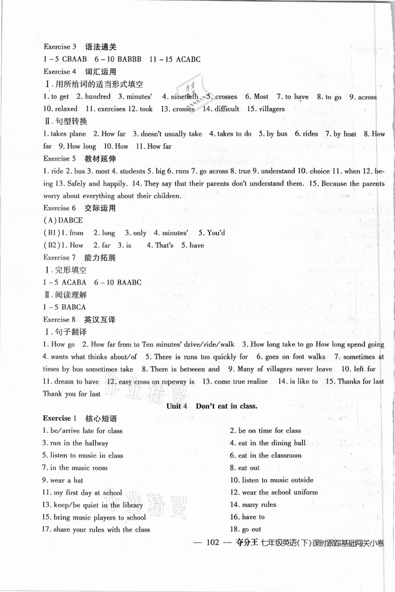 注:目前有些书本章节名称可能整理的还不是很完善,但都是按照顺序排列的,请同学们按照顺序仔细查找。练习册 2021年初中英语课时跟踪基础知识闯关七年级下册人教版 答案主要是用来给同学们做完题方便对答案用的,请勿直接抄袭。