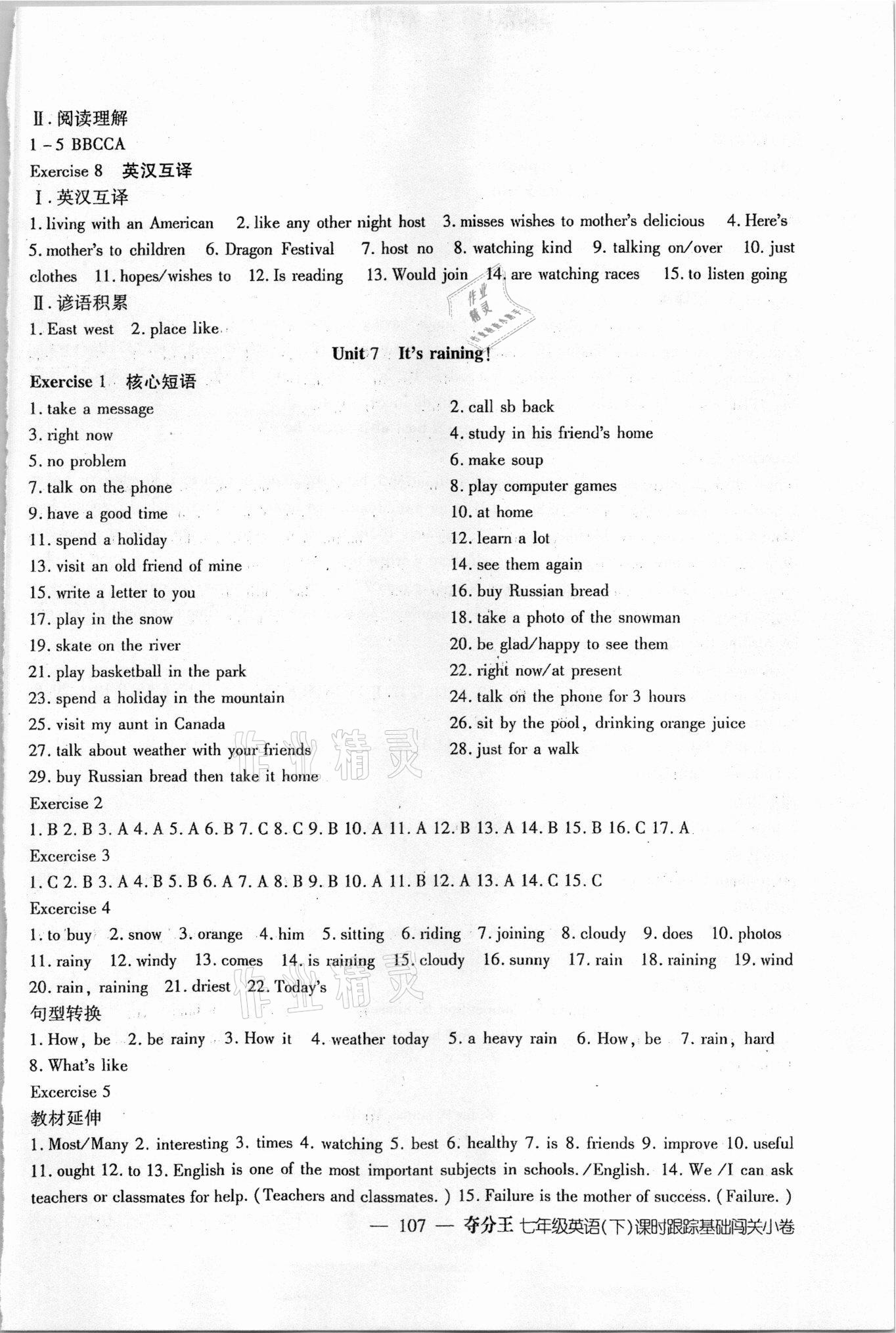 注:目前有些书本章节名称可能整理的还不是很完善,但都是按照顺序排列的,请同学们按照顺序仔细查找。练习册 2021年初中英语课时跟踪基础知识闯关七年级下册人教版 答案主要是用来给同学们做完题方便对答案用的,请勿直接抄袭。