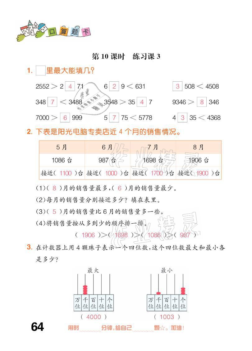 注:目前有些书本章节名称可能整理的还不是很完善,但都是按照顺序排列的,请同学们按照顺序仔细查找。练习册 2021年口算题卡二年级下册人教版新疆文化出版社 答案主要是用来给同学们做完题方便对答案用的,请勿直接抄袭。