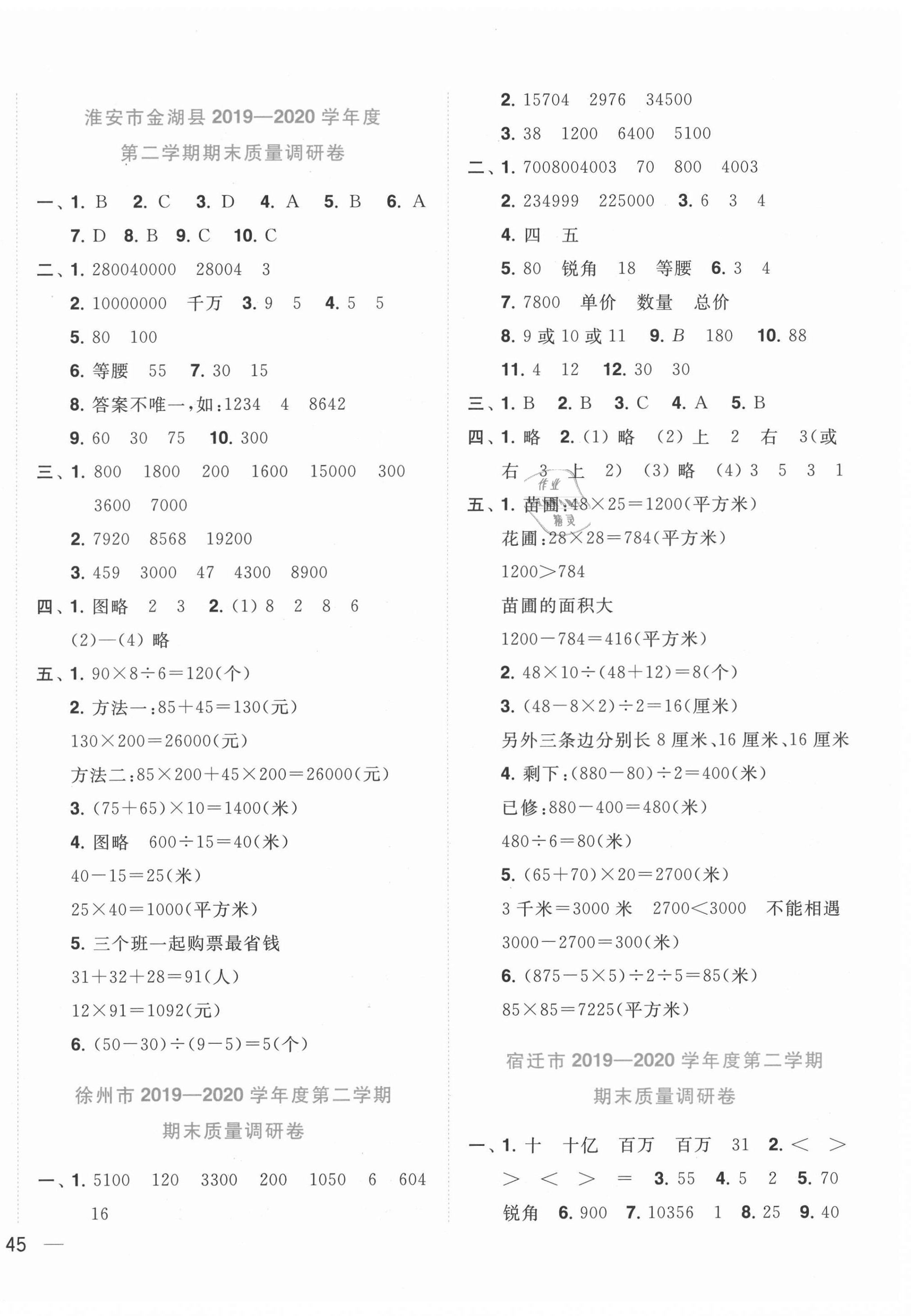 2021年小天才期末复习与13市试卷优选四年级数学下册江苏版