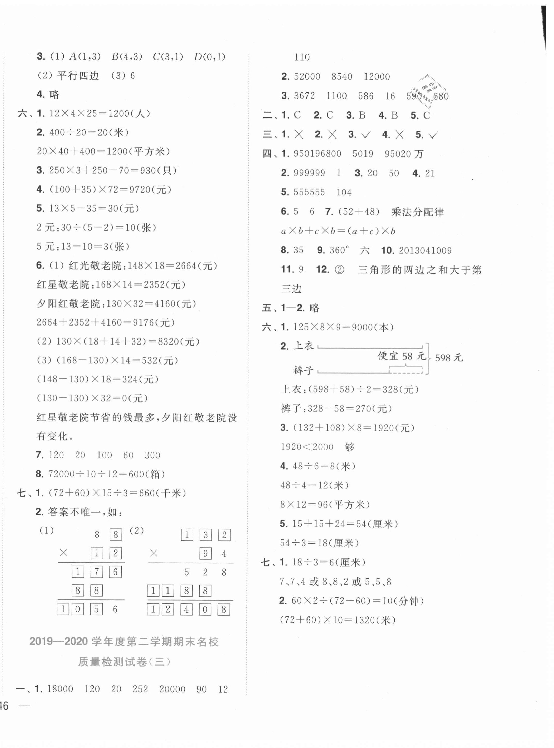 注:目前有些书本章节名称可能整理的还不是很完善,但都是按照顺序排列的,请同学们按照顺序仔细查找。练习册 2021年小天才期末复习与13市试卷优选四年级数学下册江苏版 答案主要是用来给同学们做完题方便对答案用的,请勿直接抄袭。