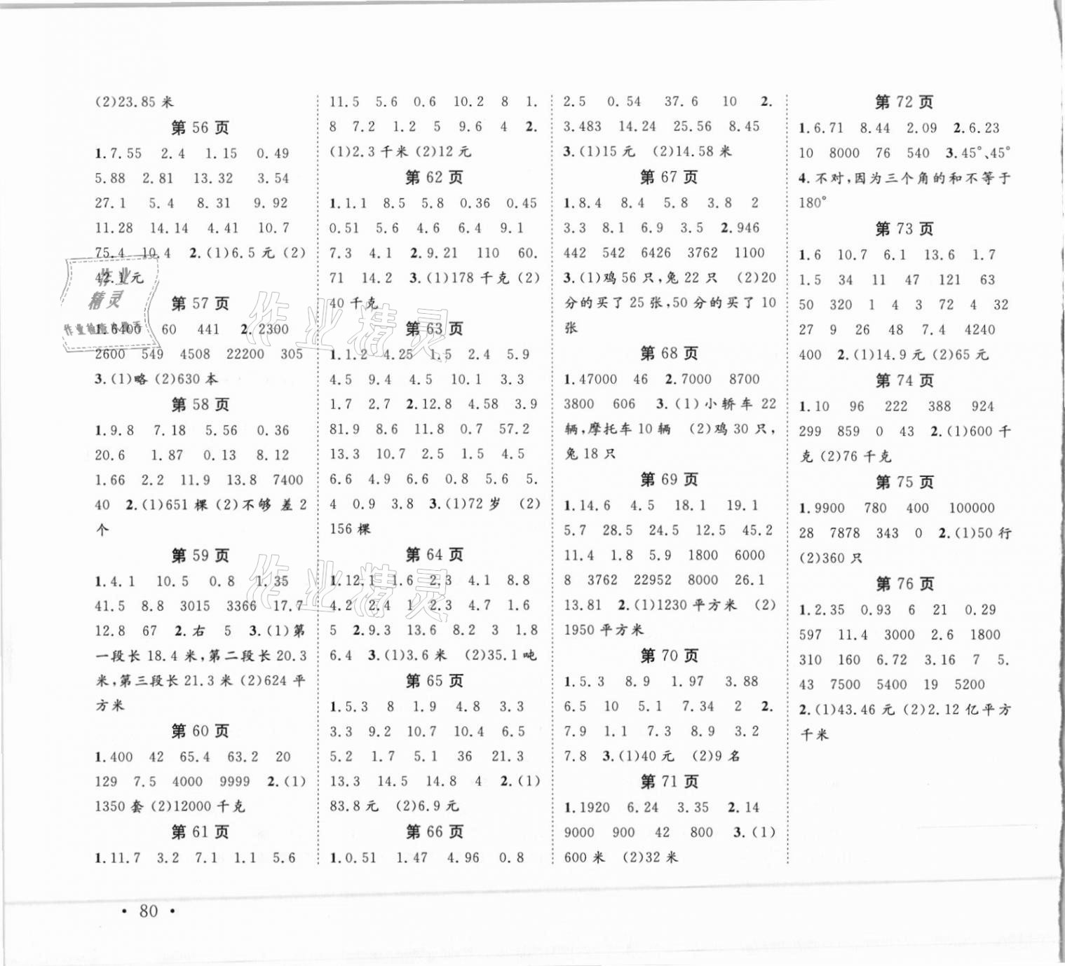 注:目前有些书本章节名称可能整理的还不是很完善,但都是按照顺序排列的,请同学们按照顺序仔细查找。练习册 2021年口算题卡加应用题专项四年级数学下册人教版宁波出版社 答案主要是用来给同学们做完题方便对答案用的,请勿直接抄袭。