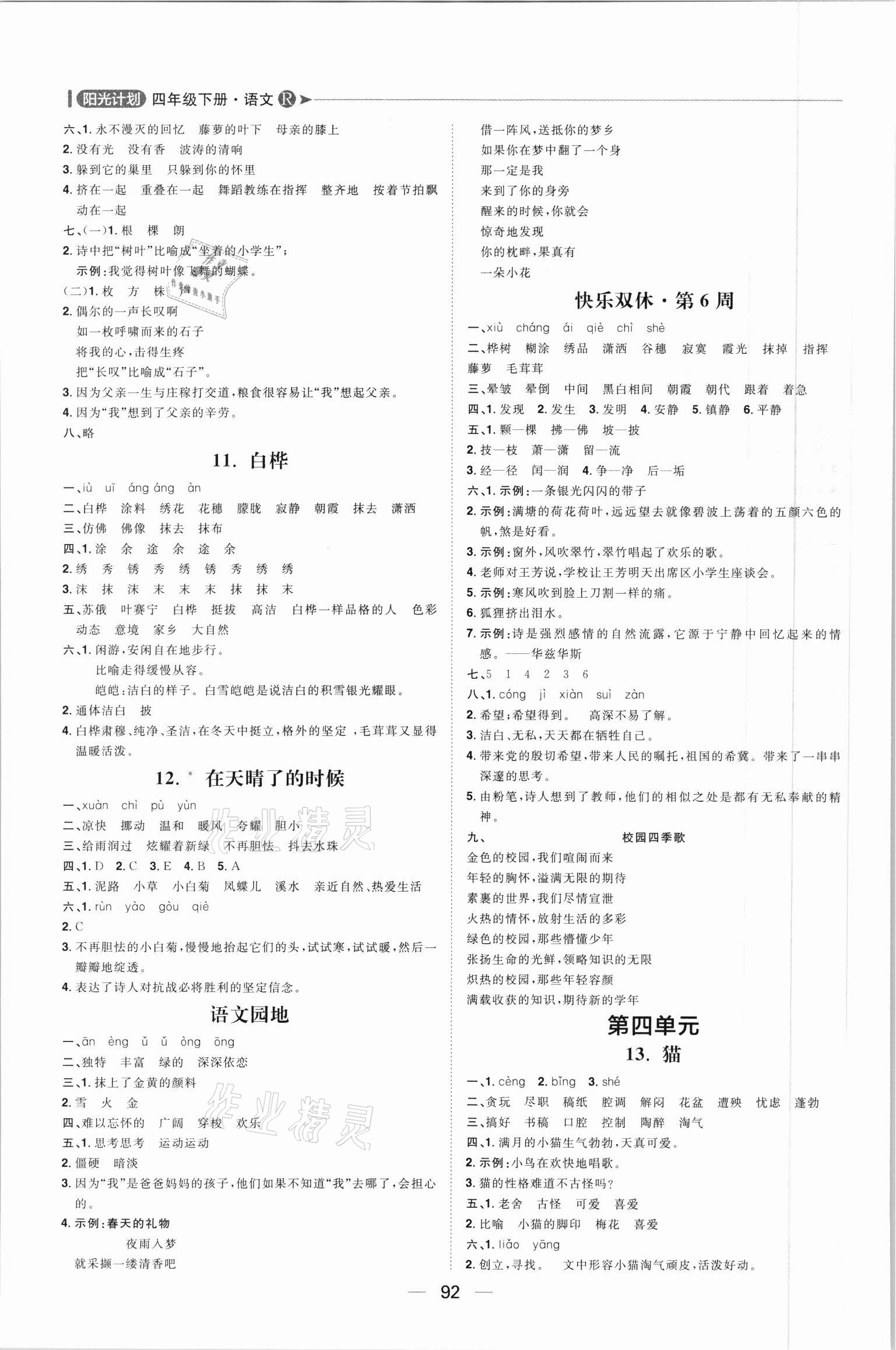 注:目前有些书本章节名称可能整理的还不是很完善,但都是按照顺序排列的,请同学们按照顺序仔细查找。练习册 2021年阳光计划四年级语文下册人教版第一步 答案主要是用来给同学们做完题方便对答案用的,请勿直接抄袭。