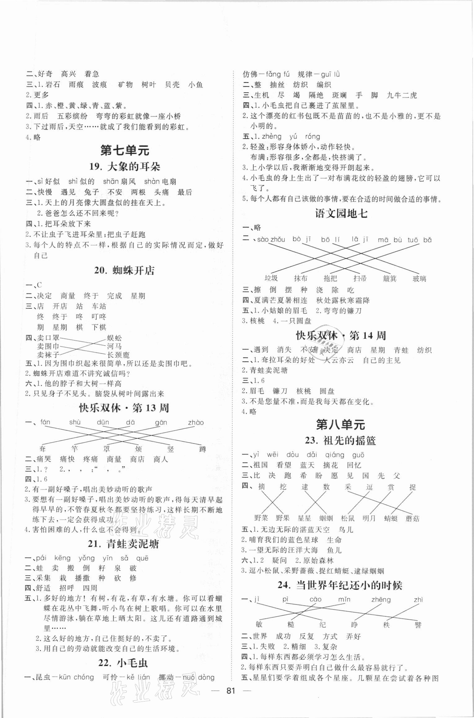 注:目前有些书本章节名称可能整理的还不是很完善,但都是按照顺序排列的,请同学们按照顺序仔细查找。练习册 2021年阳光计划二年级语文下册人教版第一步 答案主要是用来给同学们做完题方便对答案用的,请勿直接抄袭。
