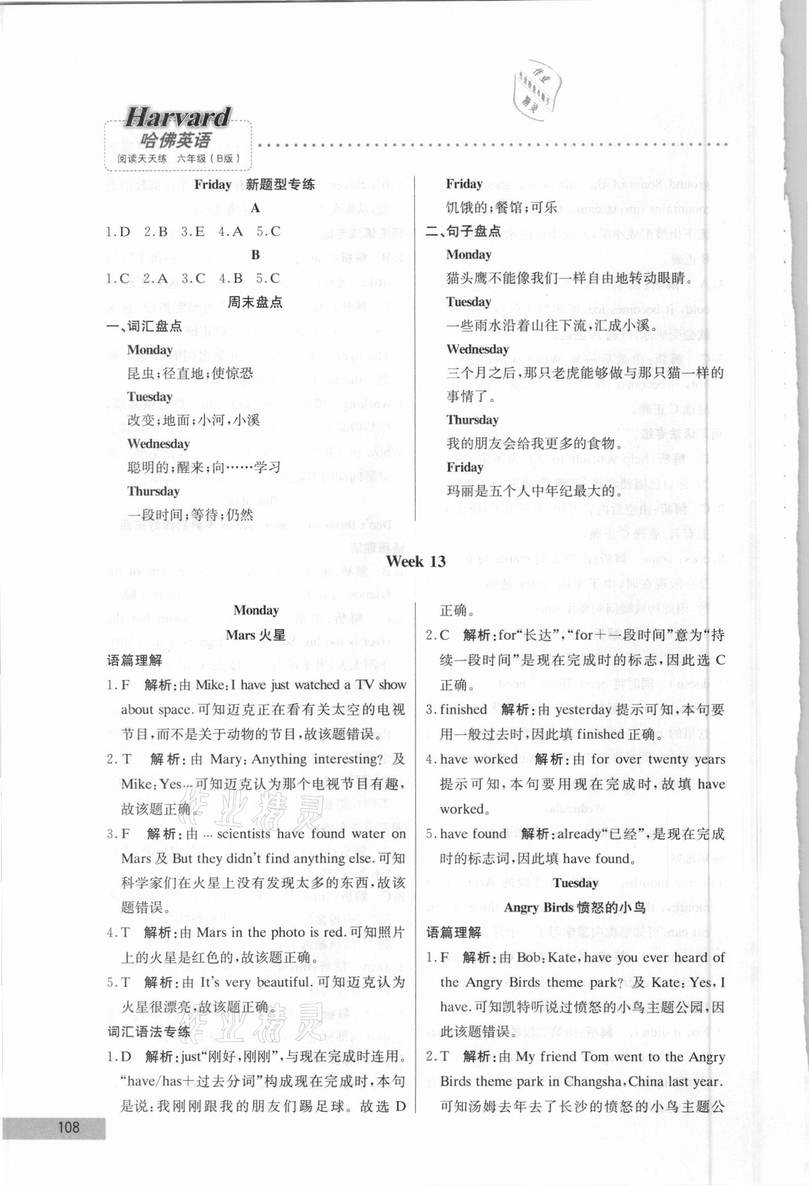 注:目前有些书本章节名称可能整理的还不是很完善,但都是按照顺序排列的,请同学们按照顺序仔细查找。练习册 2021年哈佛英语阅读天天练六年级B版 答案主要是用来给同学们做完题方便对答案用的,请勿直接抄袭。