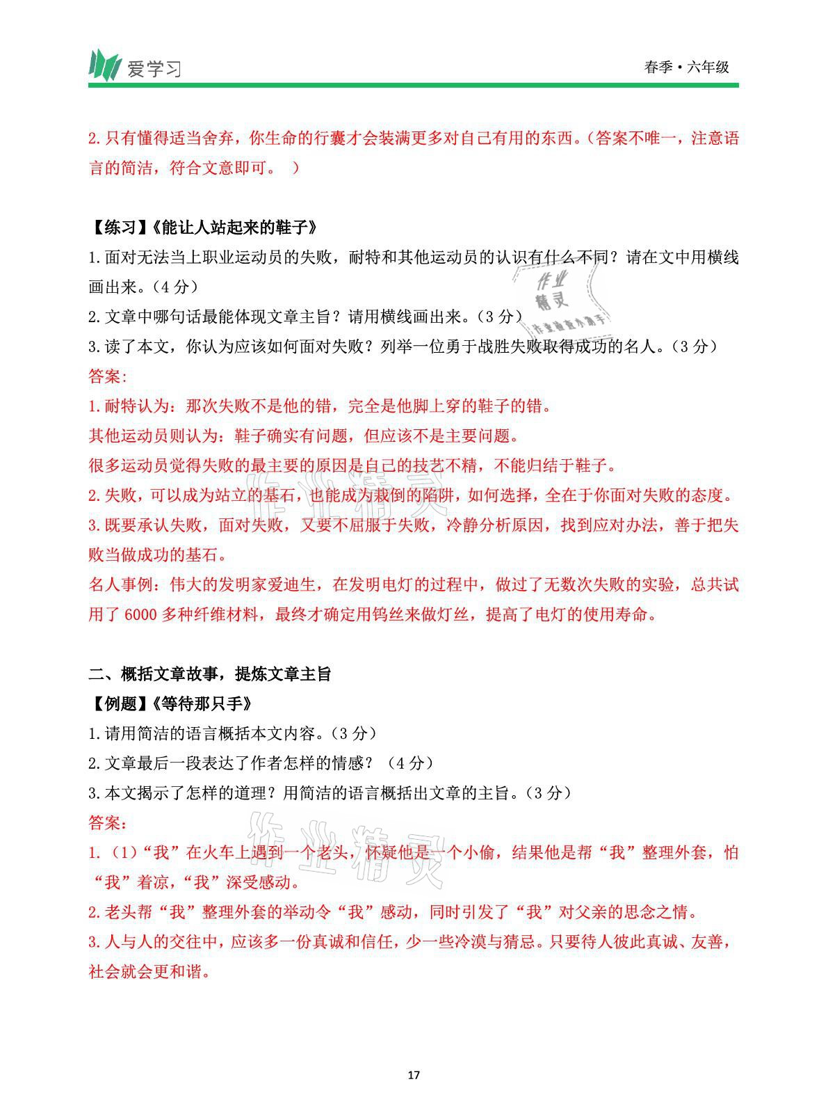 注:目前有些书本章节名称可能整理的还不是很完善,但都是按照顺序排列的,请同学们按照顺序仔细查找。练习册 2021年爱学习语文六年级下册人教版读写首都师范大学出版社 答案主要是用来给同学们做完题方便对答案用的,请勿直接抄袭。