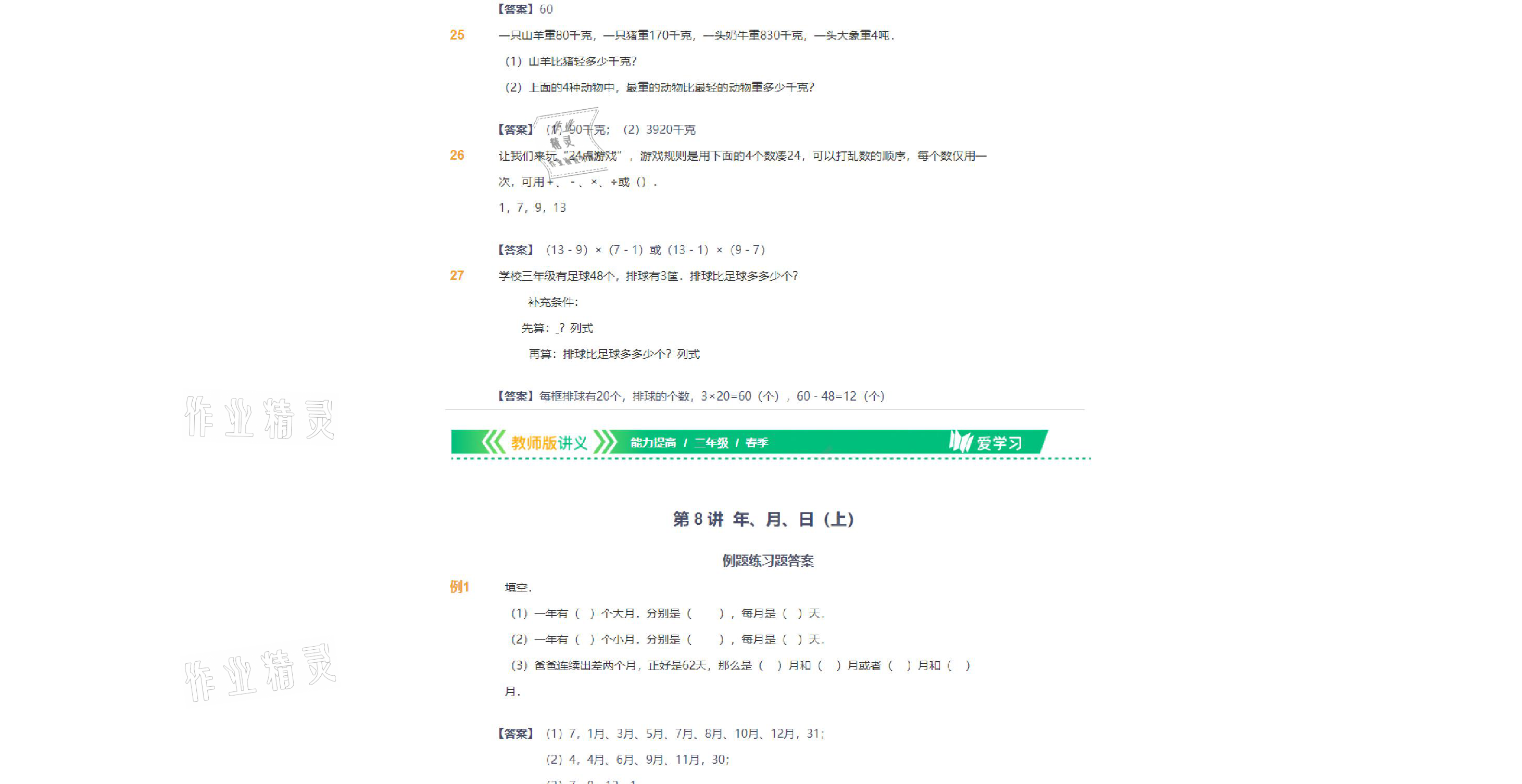 注:目前有些书本章节名称可能整理的还不是很完善,但都是按照顺序排列的,请同学们按照顺序仔细查找。练习册 2021年爱学习数学三年级下册苏教版能力提高体系首都师范大学出版社 答案主要是用来给同学们做完题方便对答案用的,请勿直接抄袭。