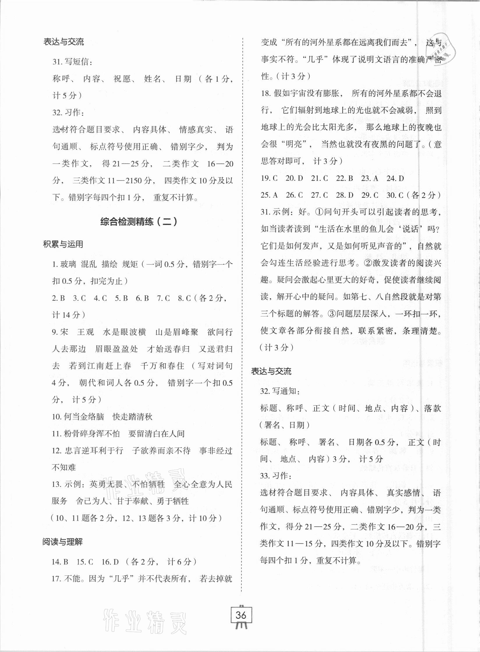 注:目前有些书本章节名称可能整理的还不是很完善,但都是按照顺序排列的,请同学们按照顺序仔细查找。练习册 2021年小学生检测精练六年级语文下册人教版 答案主要是用来给同学们做完题方便对答案用的,请勿直接抄袭。