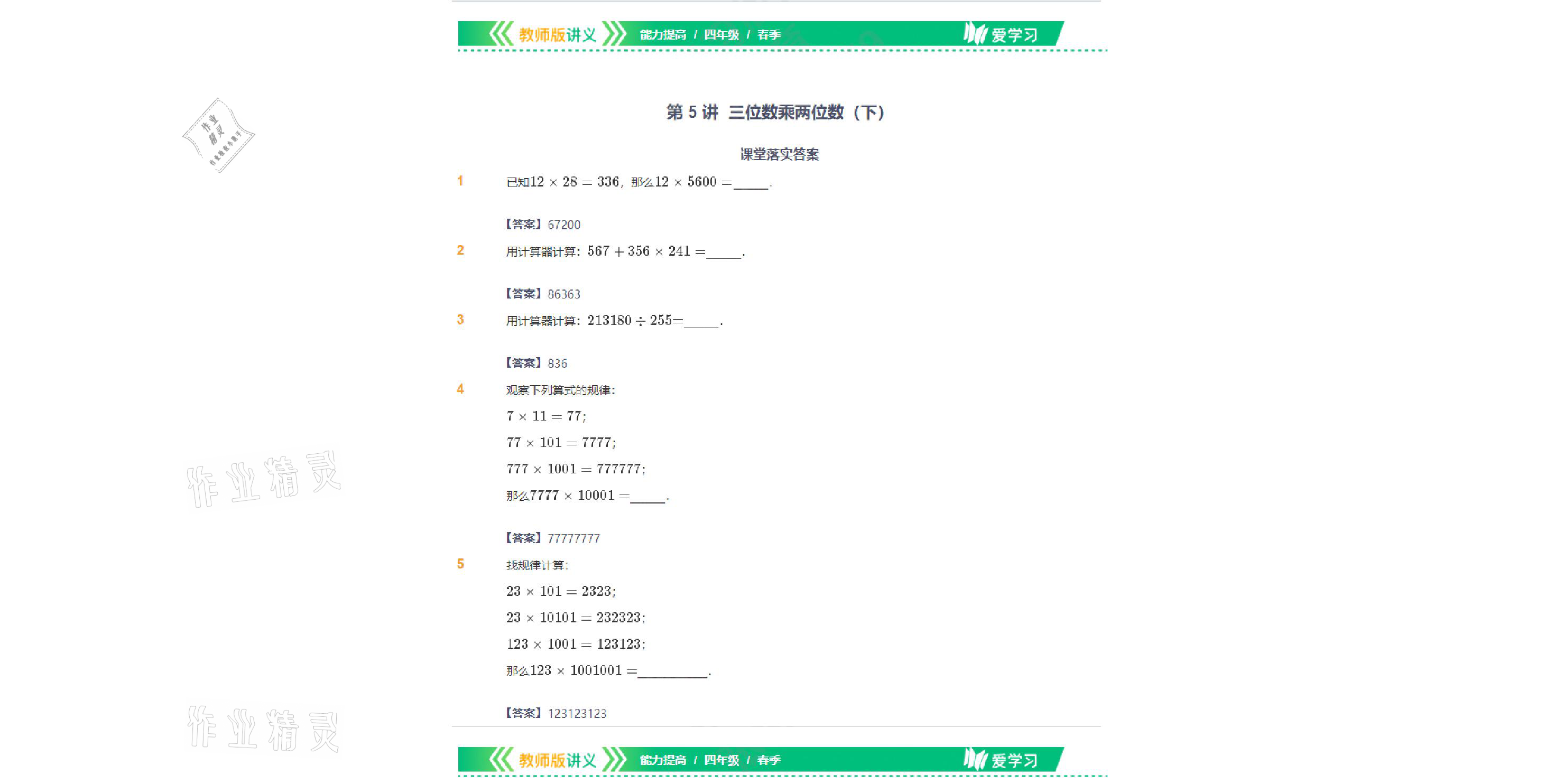 注:目前有些书本章节名称可能整理的还不是很完善,但都是按照顺序排列的,请同学们按照顺序仔细查找。练习册 2021年爱学习数学四年级下册苏教版能力提高体系首都师范大学出版社 答案主要是用来给同学们做完题方便对答案用的,请勿直接抄袭。