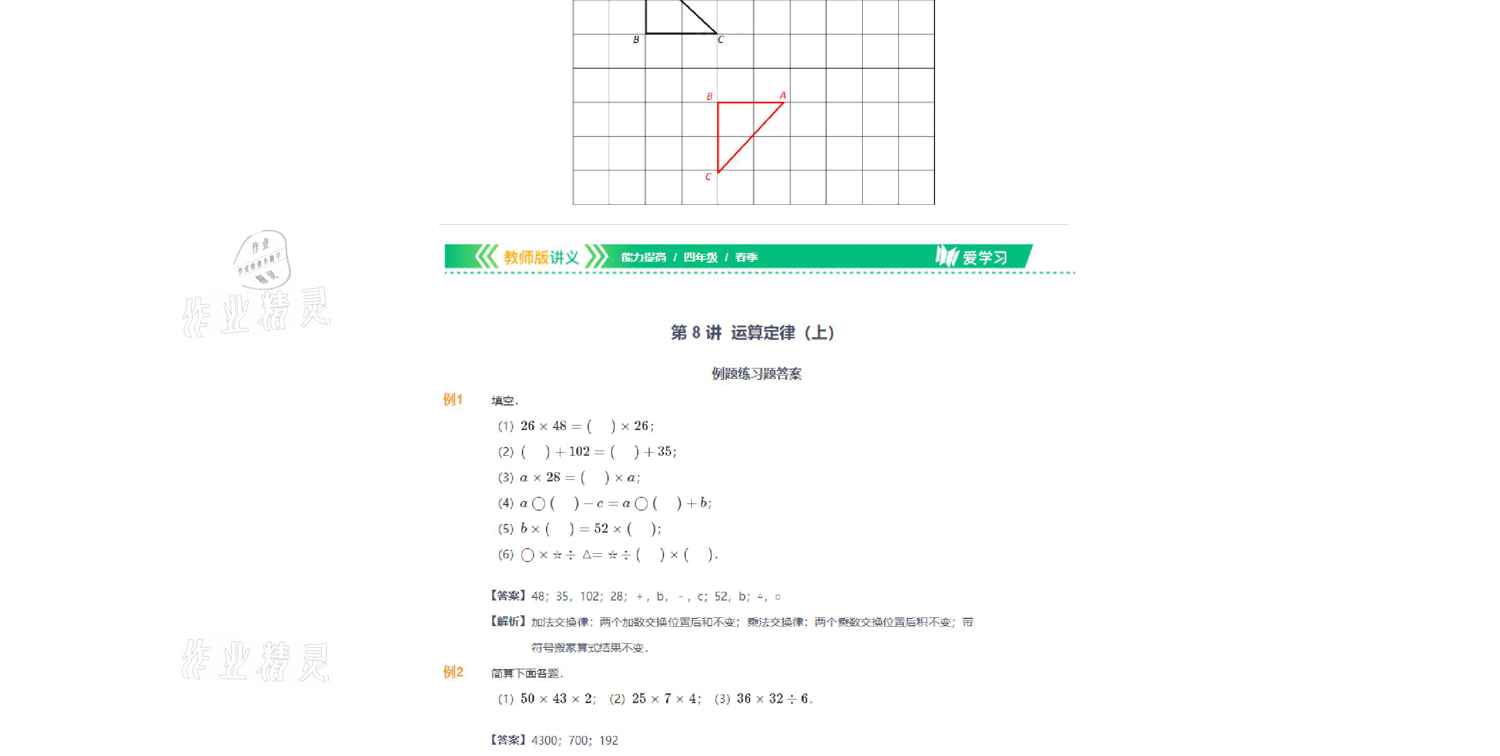 注:目前有些书本章节名称可能整理的还不是很完善,但都是按照顺序排列的,请同学们按照顺序仔细查找。练习册 2021年爱学习数学四年级下册苏教版能力提高体系首都师范大学出版社 答案主要是用来给同学们做完题方便对答案用的,请勿直接抄袭。