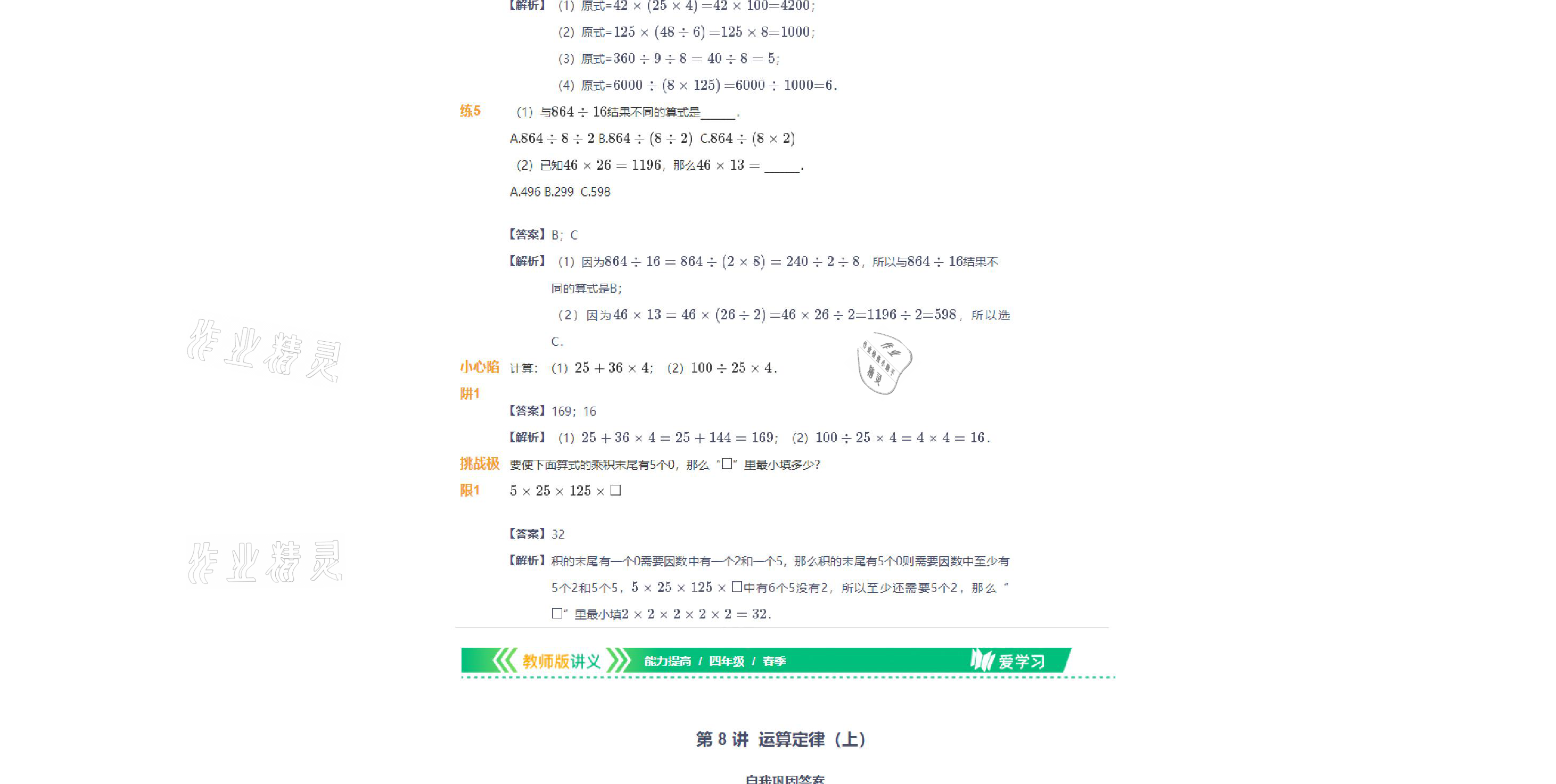 注:目前有些书本章节名称可能整理的还不是很完善,但都是按照顺序排列的,请同学们按照顺序仔细查找。练习册 2021年爱学习数学四年级下册苏教版能力提高体系首都师范大学出版社 答案主要是用来给同学们做完题方便对答案用的,请勿直接抄袭。