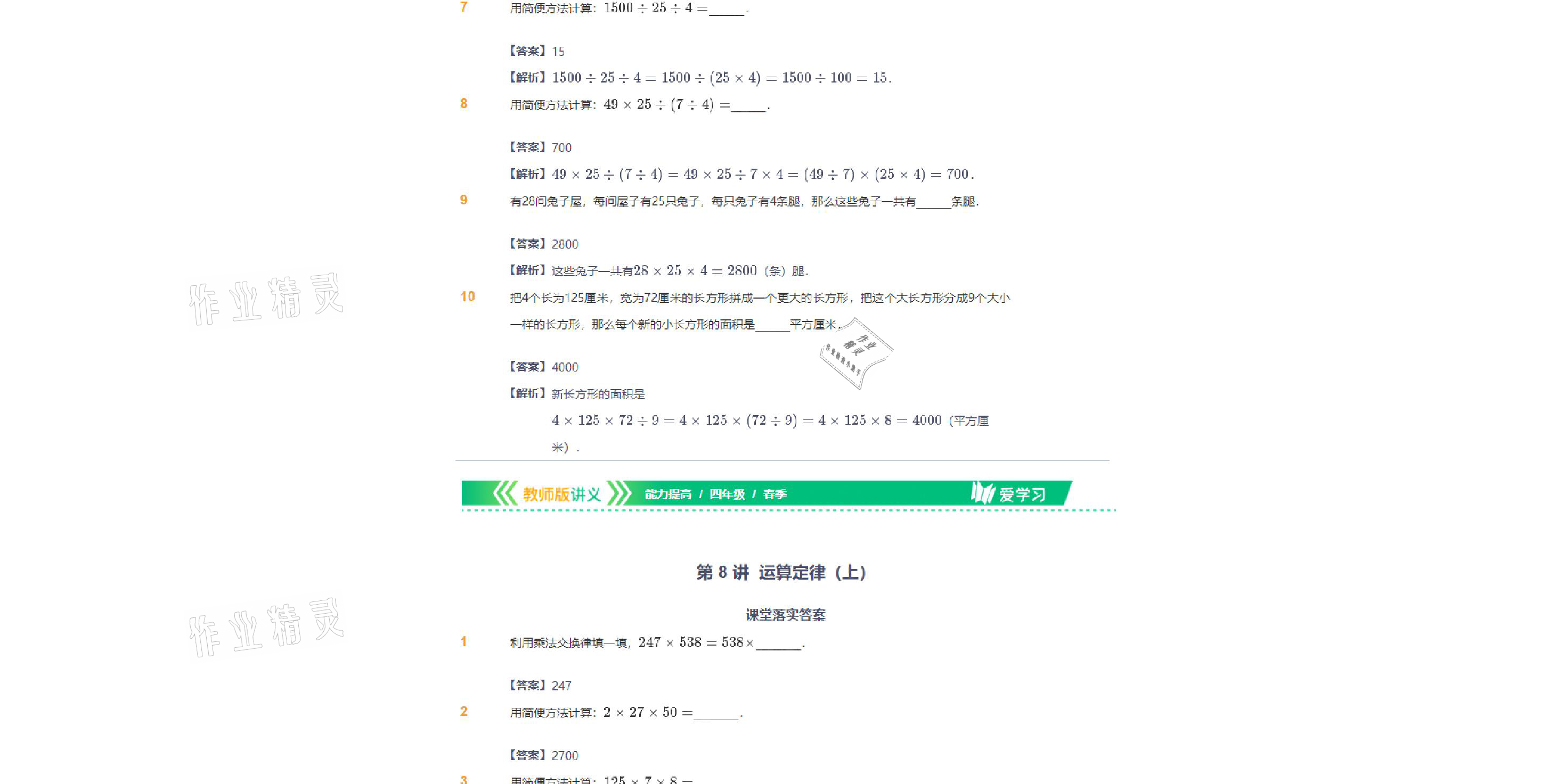注:目前有些书本章节名称可能整理的还不是很完善,但都是按照顺序排列的,请同学们按照顺序仔细查找。练习册 2021年爱学习数学四年级下册苏教版能力提高体系首都师范大学出版社 答案主要是用来给同学们做完题方便对答案用的,请勿直接抄袭。