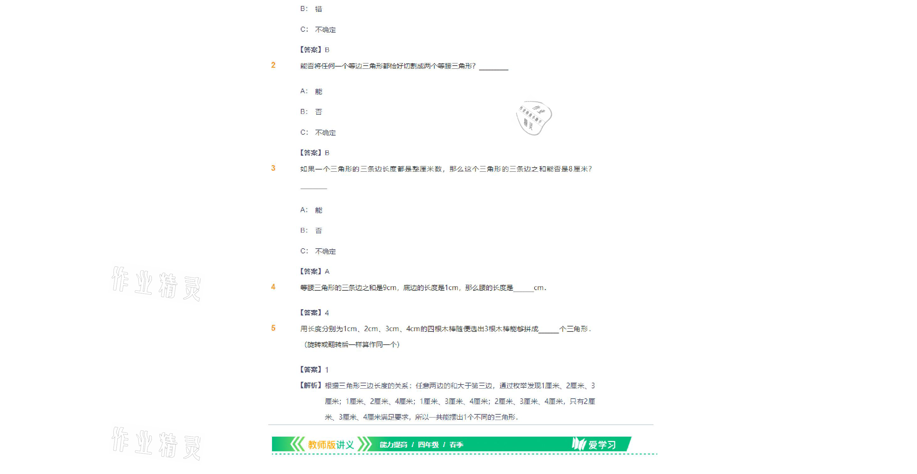 注:目前有些书本章节名称可能整理的还不是很完善,但都是按照顺序排列的,请同学们按照顺序仔细查找。练习册 2021年爱学习数学四年级下册苏教版能力提高体系首都师范大学出版社 答案主要是用来给同学们做完题方便对答案用的,请勿直接抄袭。