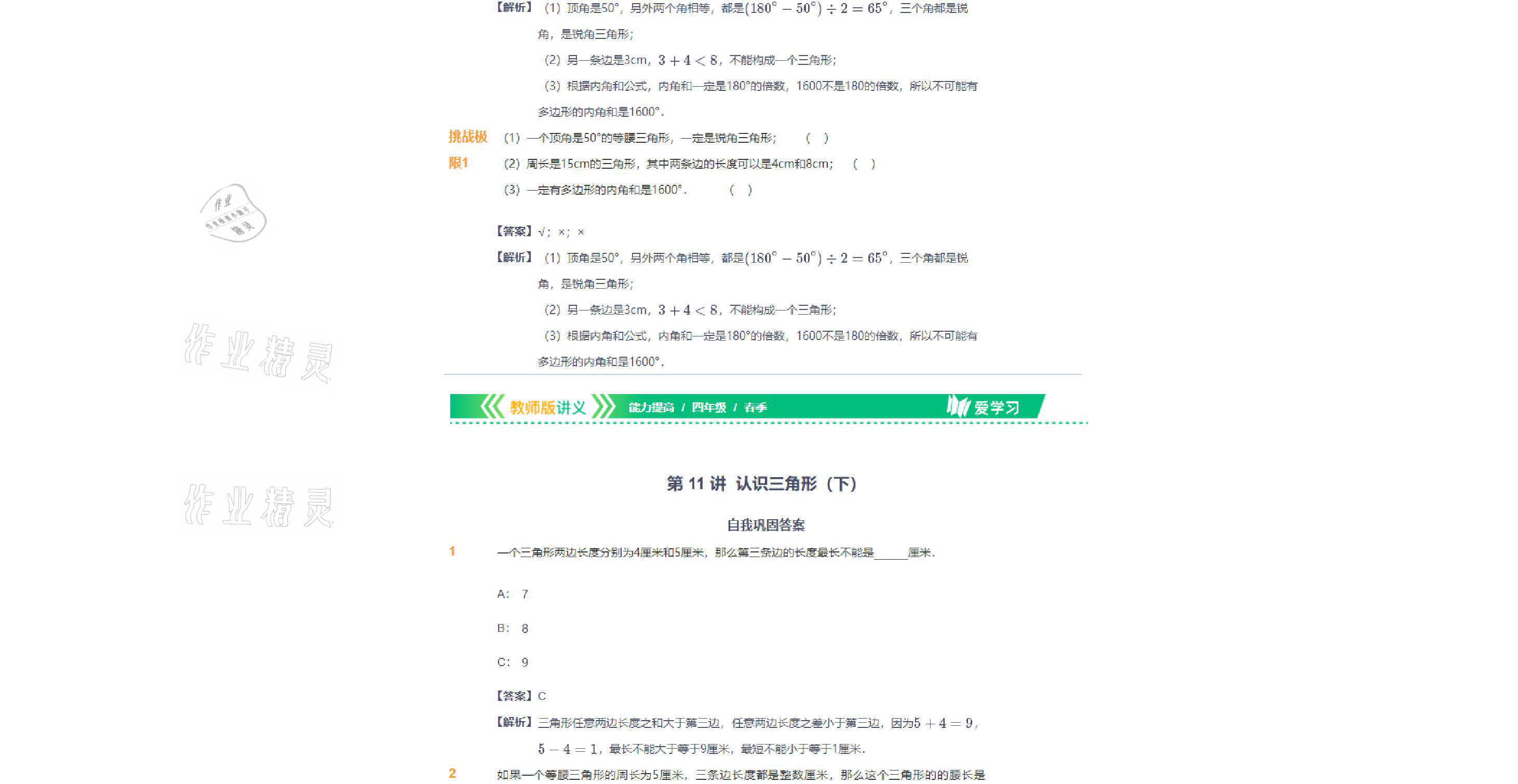 注:目前有些书本章节名称可能整理的还不是很完善,但都是按照顺序排列的,请同学们按照顺序仔细查找。练习册 2021年爱学习数学四年级下册苏教版能力提高体系首都师范大学出版社 答案主要是用来给同学们做完题方便对答案用的,请勿直接抄袭。