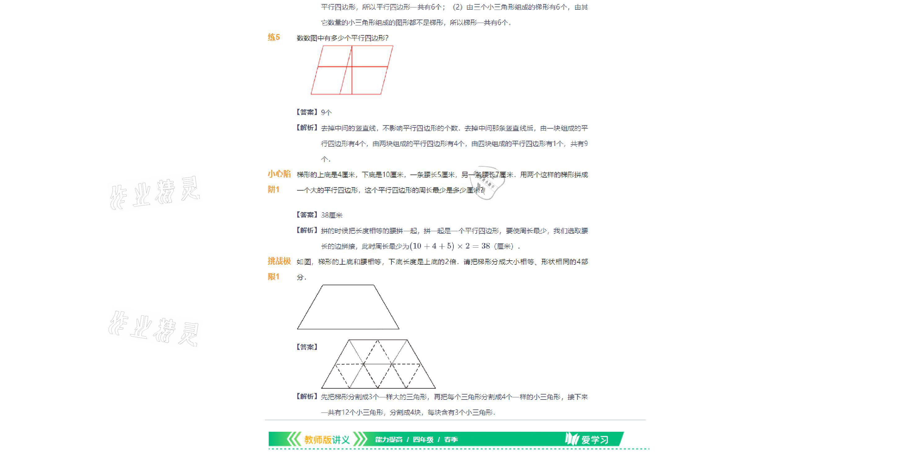 注:目前有些书本章节名称可能整理的还不是很完善,但都是按照顺序排列的,请同学们按照顺序仔细查找。练习册 2021年爱学习数学四年级下册苏教版能力提高体系首都师范大学出版社 答案主要是用来给同学们做完题方便对答案用的,请勿直接抄袭。