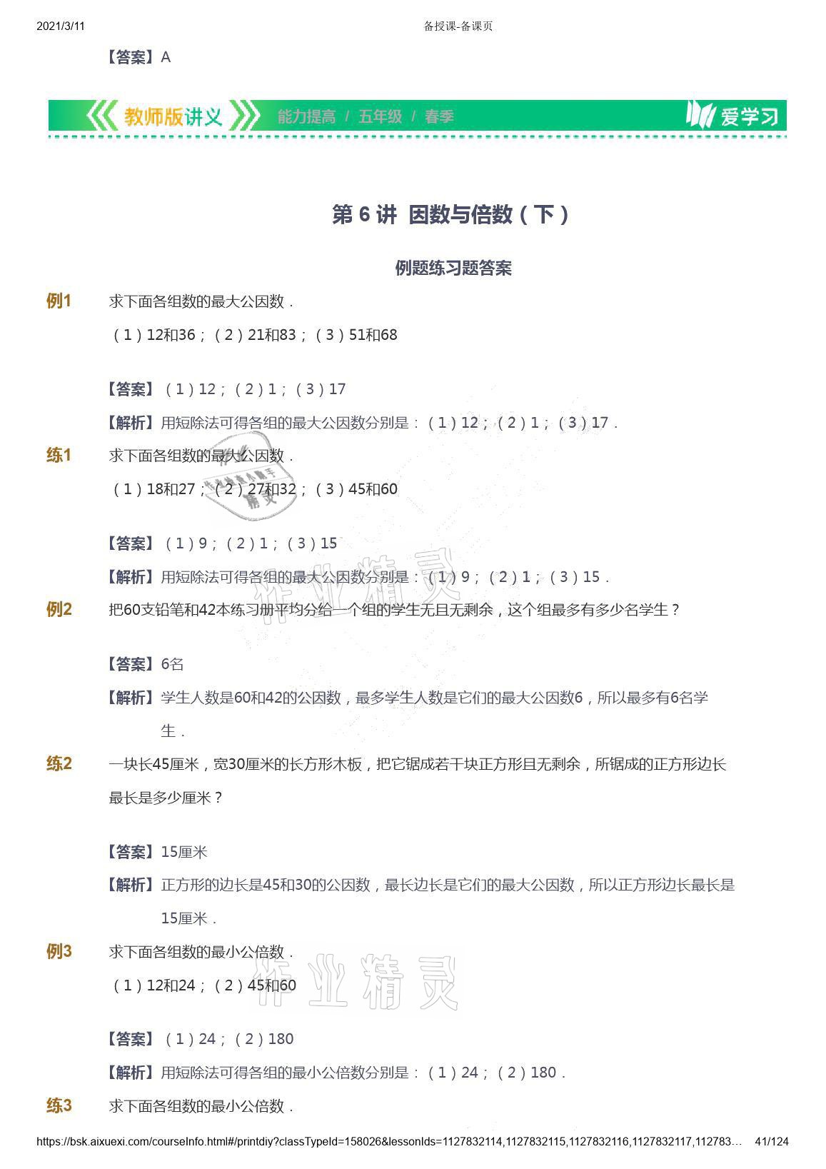 注:目前有些书本章节名称可能整理的还不是很完善,但都是按照顺序排列的,请同学们按照顺序仔细查找。练习册 2021年爱学习数学五年级下册苏教版能力提高体系首都师范大学出版社 答案主要是用来给同学们做完题方便对答案用的,请勿直接抄袭。