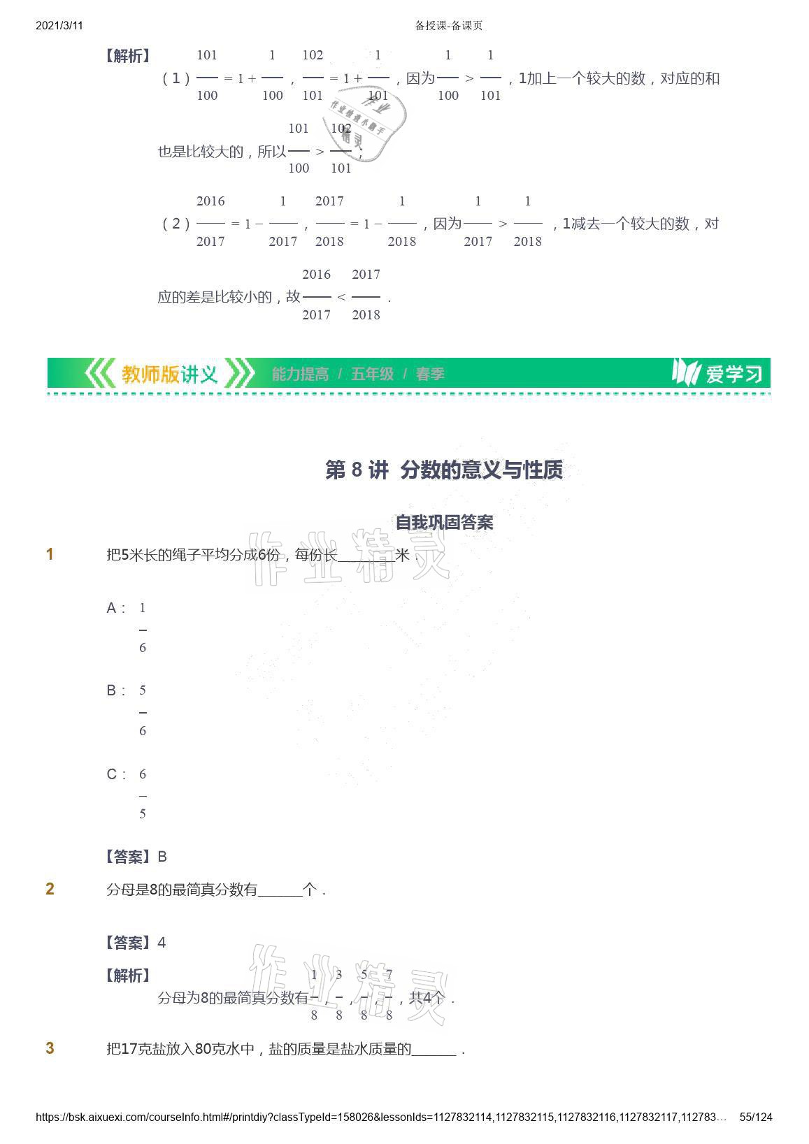注:目前有些书本章节名称可能整理的还不是很完善,但都是按照顺序排列的,请同学们按照顺序仔细查找。练习册 2021年爱学习数学五年级下册苏教版能力提高体系首都师范大学出版社 答案主要是用来给同学们做完题方便对答案用的,请勿直接抄袭。
