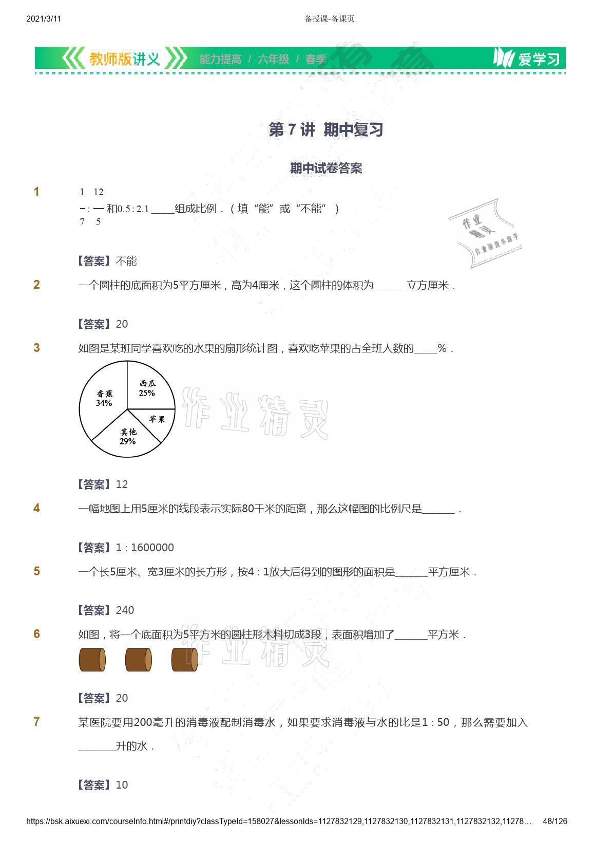 注:目前有些书本章节名称可能整理的还不是很完善,但都是按照顺序排列的,请同学们按照顺序仔细查找。练习册 2021年爱学习数学六年级下册苏教版能力提高体系首都师范大学出版社 答案主要是用来给同学们做完题方便对答案用的,请勿直接抄袭。