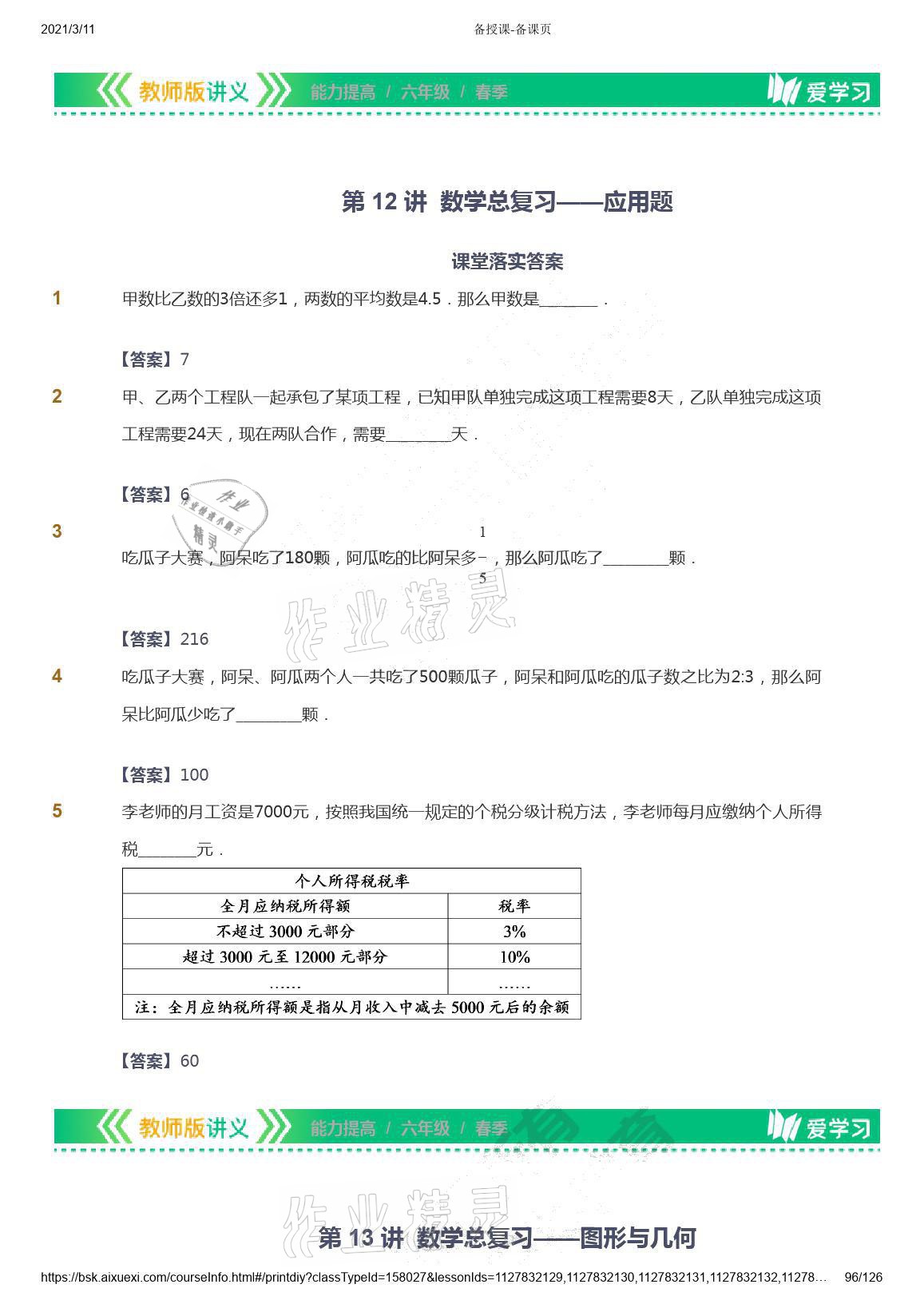 注:目前有些书本章节名称可能整理的还不是很完善,但都是按照顺序排列的,请同学们按照顺序仔细查找。练习册 2021年爱学习数学六年级下册苏教版能力提高体系首都师范大学出版社 答案主要是用来给同学们做完题方便对答案用的,请勿直接抄袭。