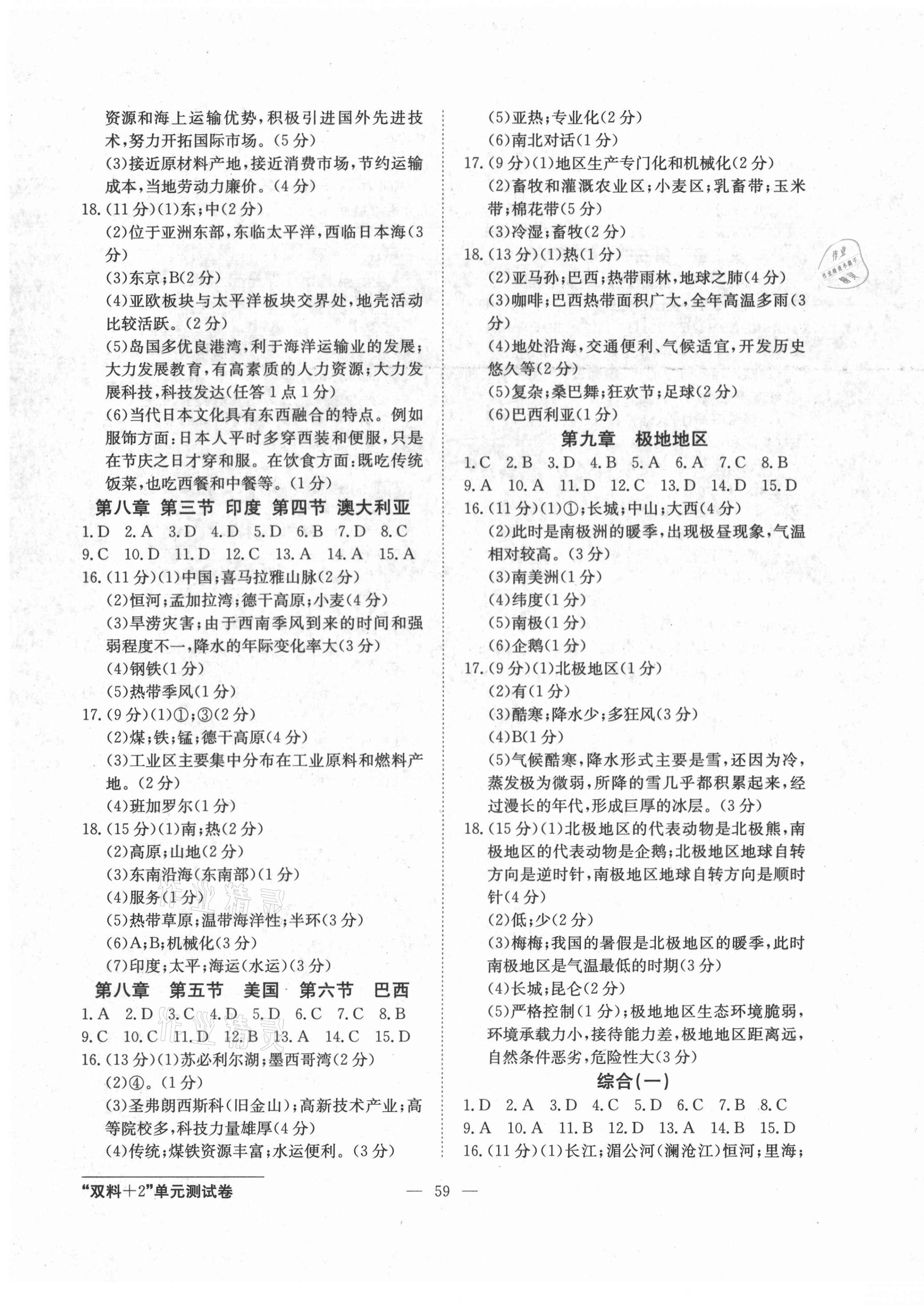 《2021年双料加2单元测试卷七年级地理下册人教版》